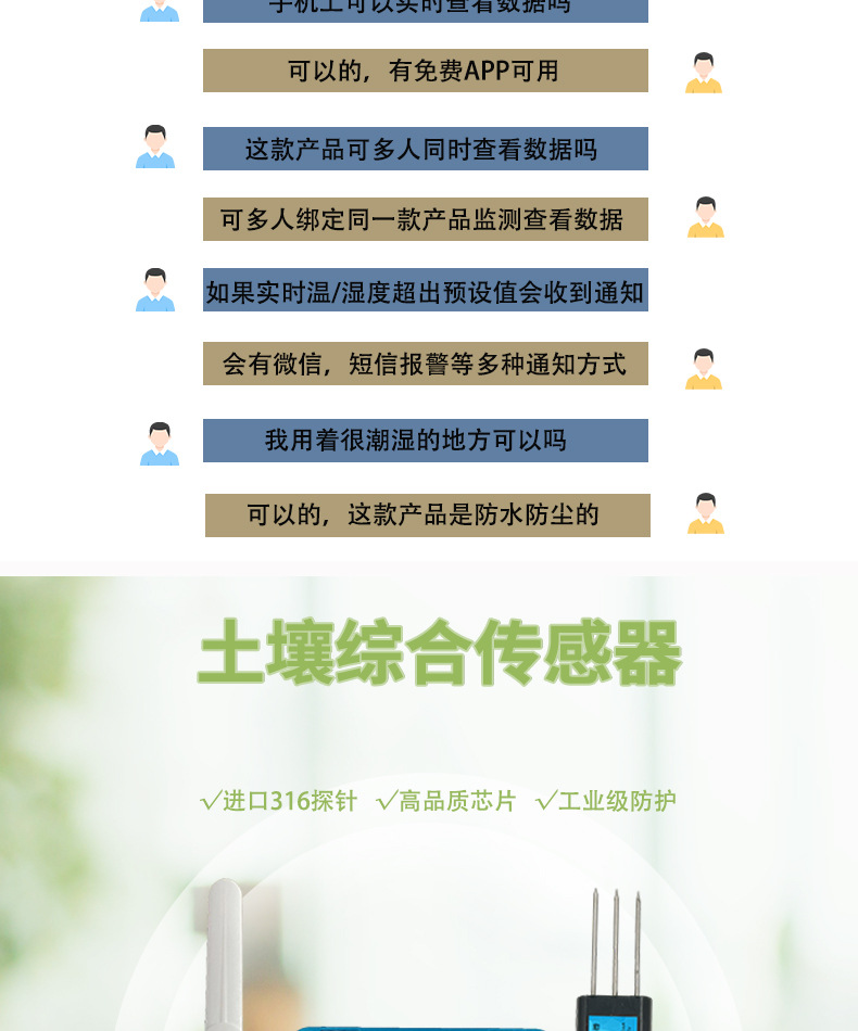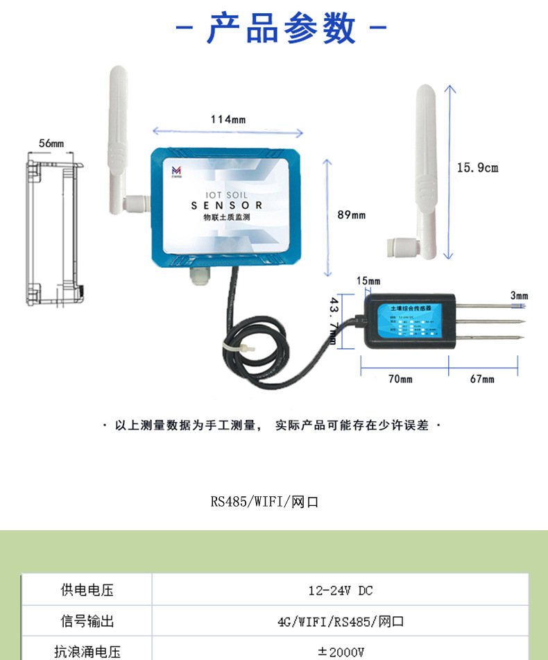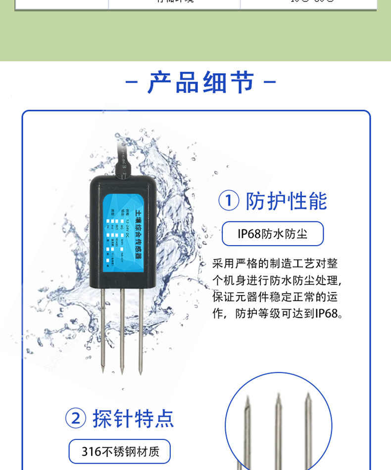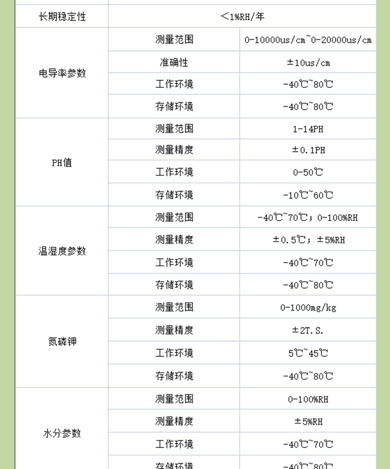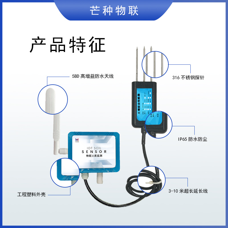 Почвенный азот; Почвенный фосфор; Почвенный калий; Влажность почвы; PH почвы; Почва EC (проводимость); Температура и влажность почвы; Почва азот-фосфат-калий (три в одном); Трепка и влажность в почве; PH температура и влажность почвы; Температура и влажность почвы EC (проводимость); Температура и влажность почвы PH азот-фосфат-калий; Электропроводность температуры и влажности почвы PH азот-фосфат-калий; 485 выход (обязательно); Выход 4G (обязательно); Сетчатый выход (обязательно); Выход WIFI (обязательно); Выход NB (обязательно); Выход LORA (обязательно)