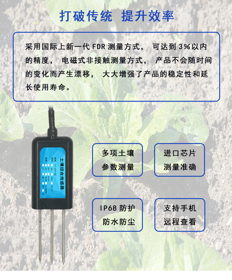 Мониторинг в режиме реального времени Датчик почвы 485/4G/WIFI/Сетевое отверстие/NB Высокоточный интеграционный датчик почвы