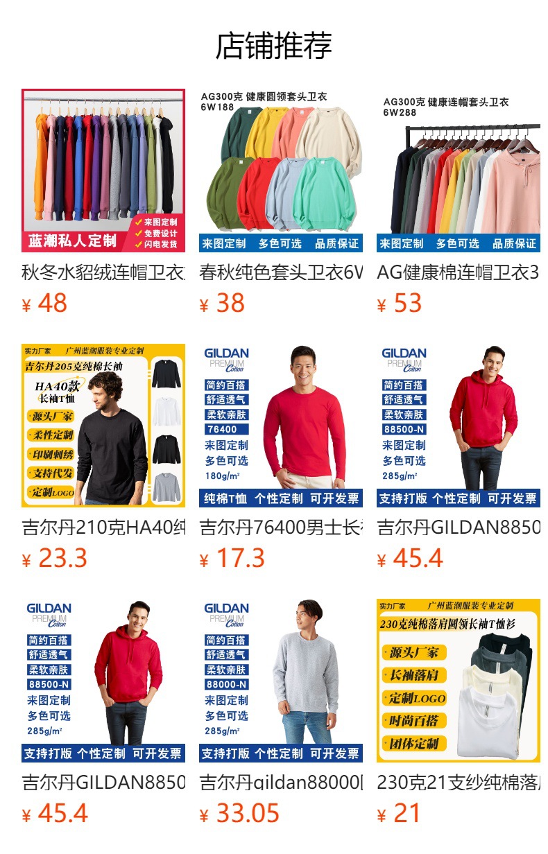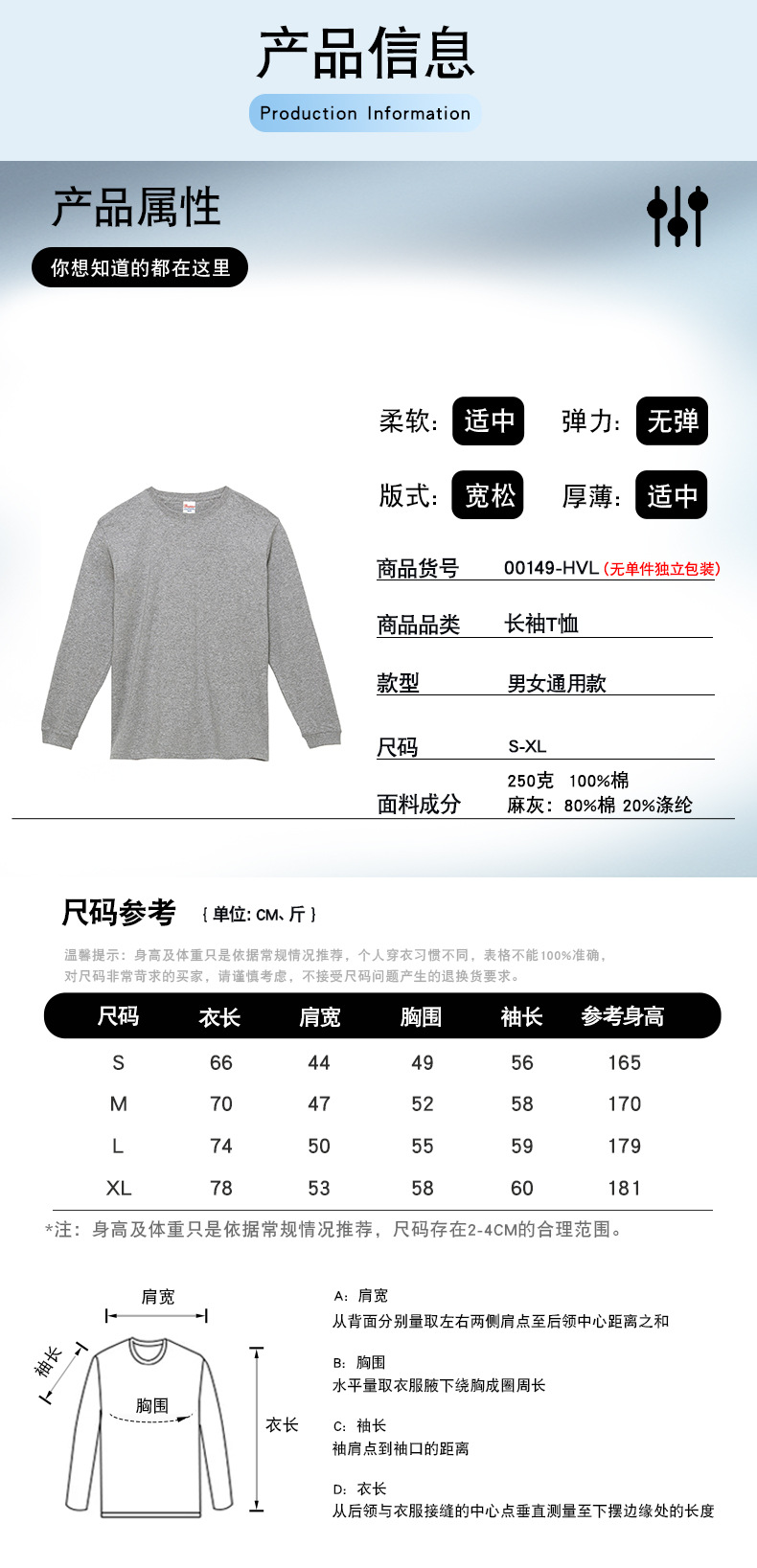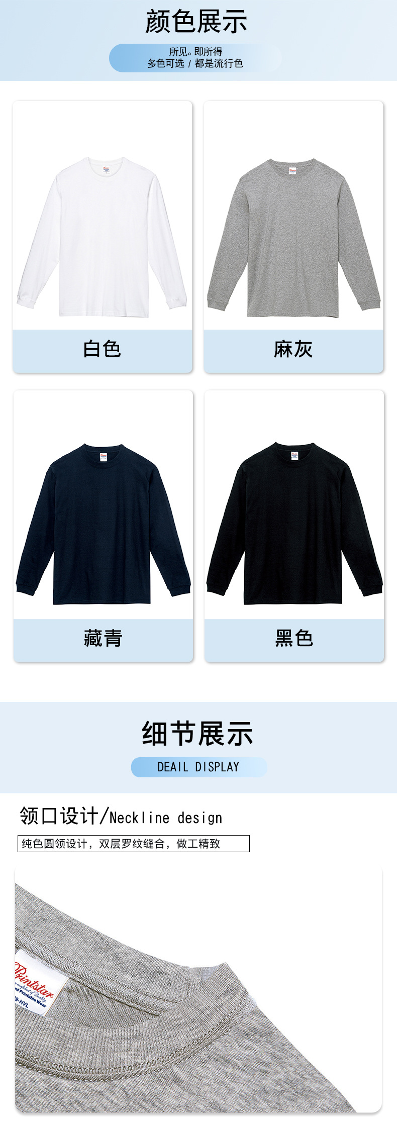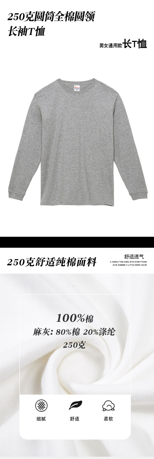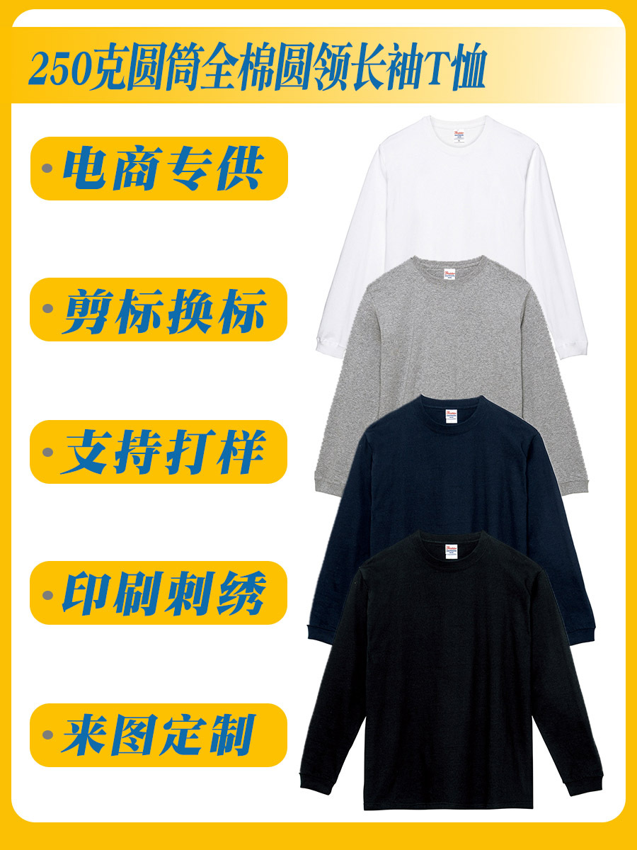 250-граммовые тяжелые товары достигают хлопчатобумажных футболок с круглым вырезом и длинными рукавами.