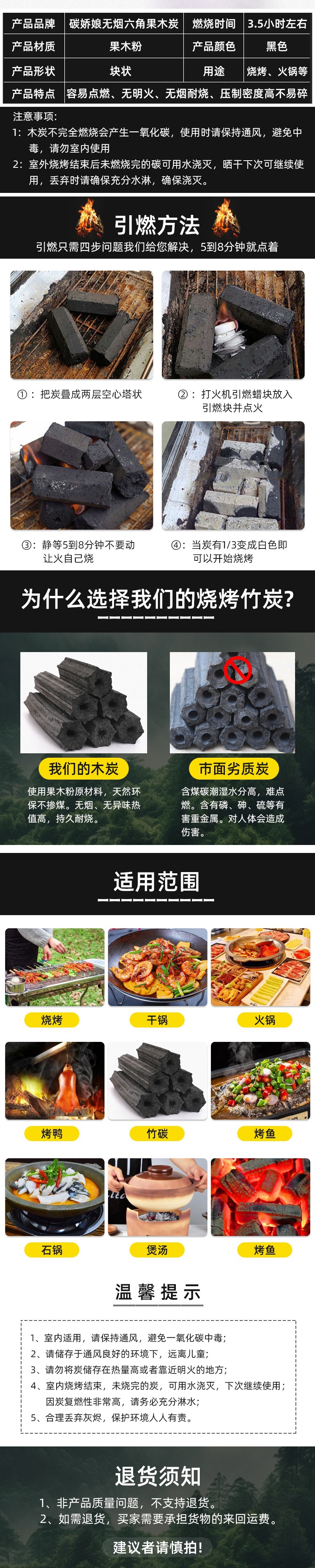 Устойчивый к горению и быстрому горению, высокая температура, легковоспламеняющийся, экологически чистый древесный уголь
