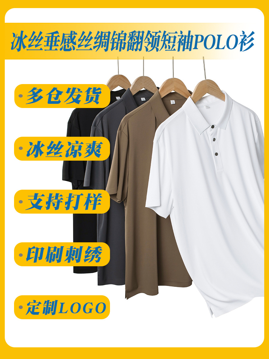 Высококачественная ледяная шелковая шелковая парча 170 г без клейких лацканов с короткими рукавами рубашка Polo напечатана LOGO слово пользовательская вышивка