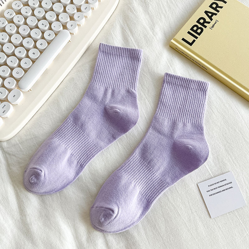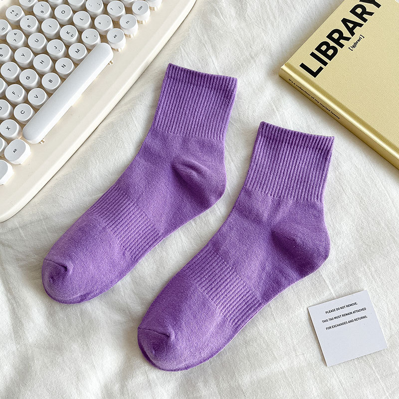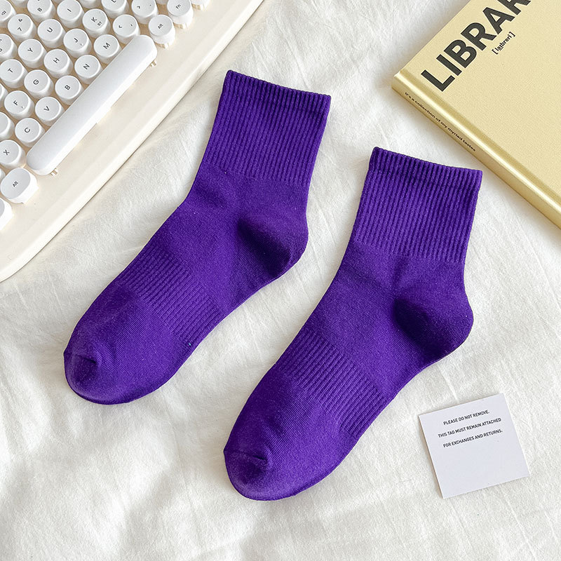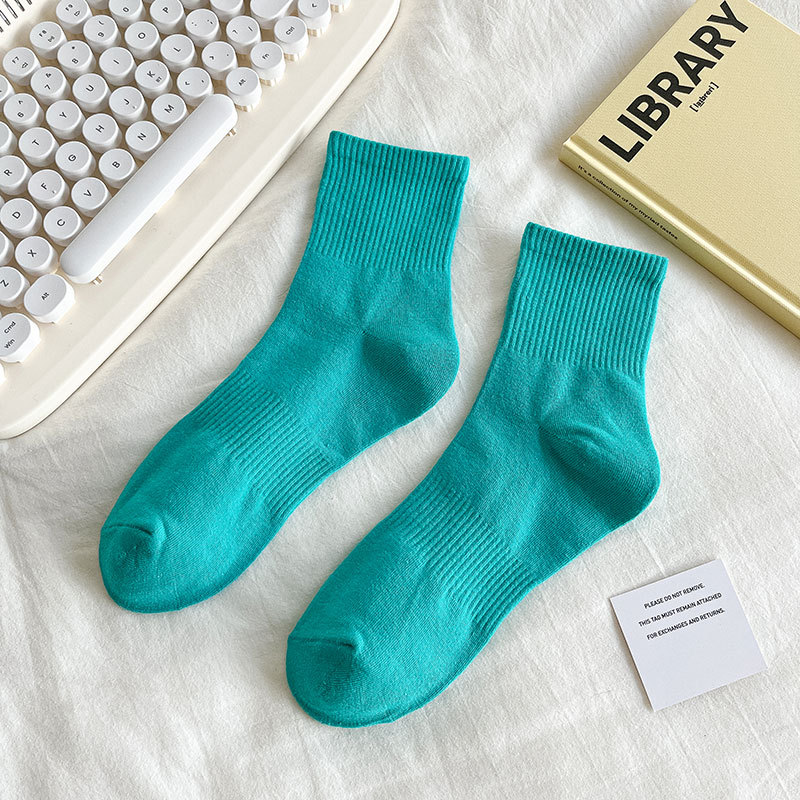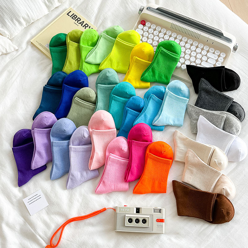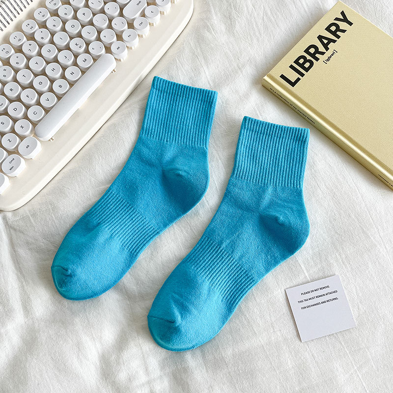 Цветные носки женские весенние и летние тонкие короткие трубки сплошной цвет дикий хлопок сплошной цвет