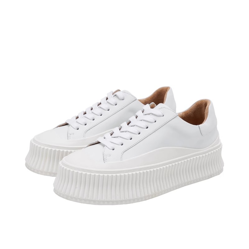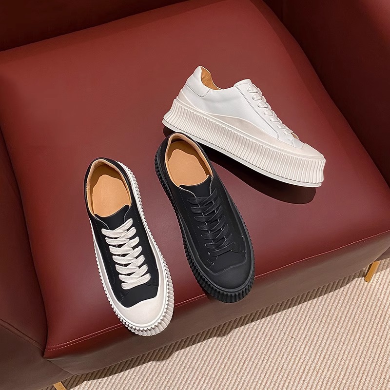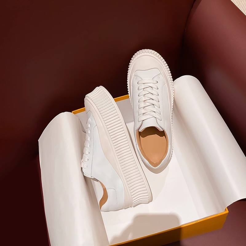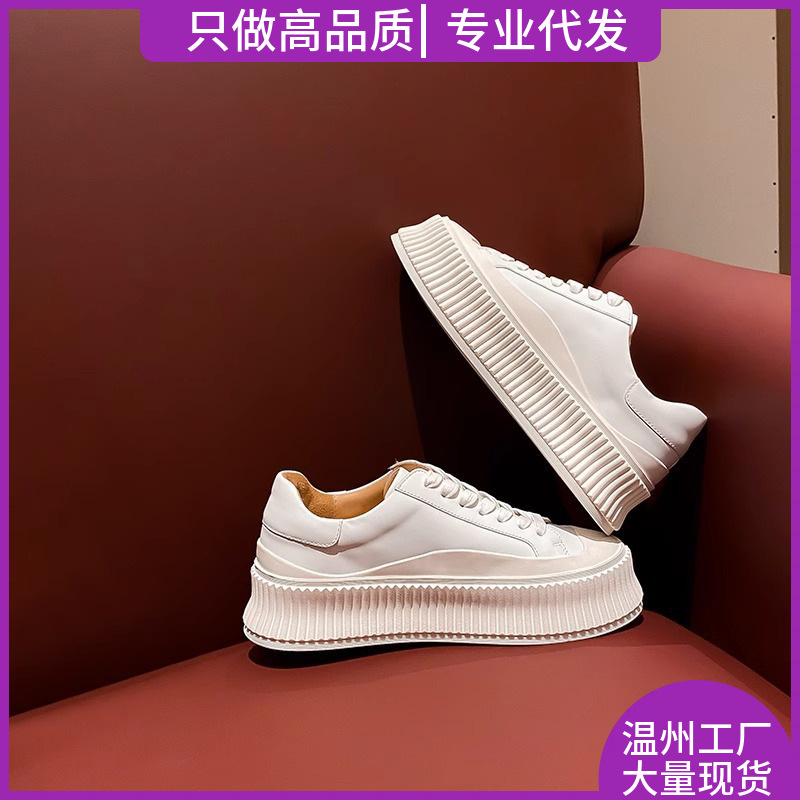 Полностью из воловьей кожи ~ женские туфли на толстой подошве, увеличивающие внутреннюю высоту, белые женские туфли, новые повседневные кроссовки 2025 года, туфли-бисквиты на платформе из натуральной кожи.
