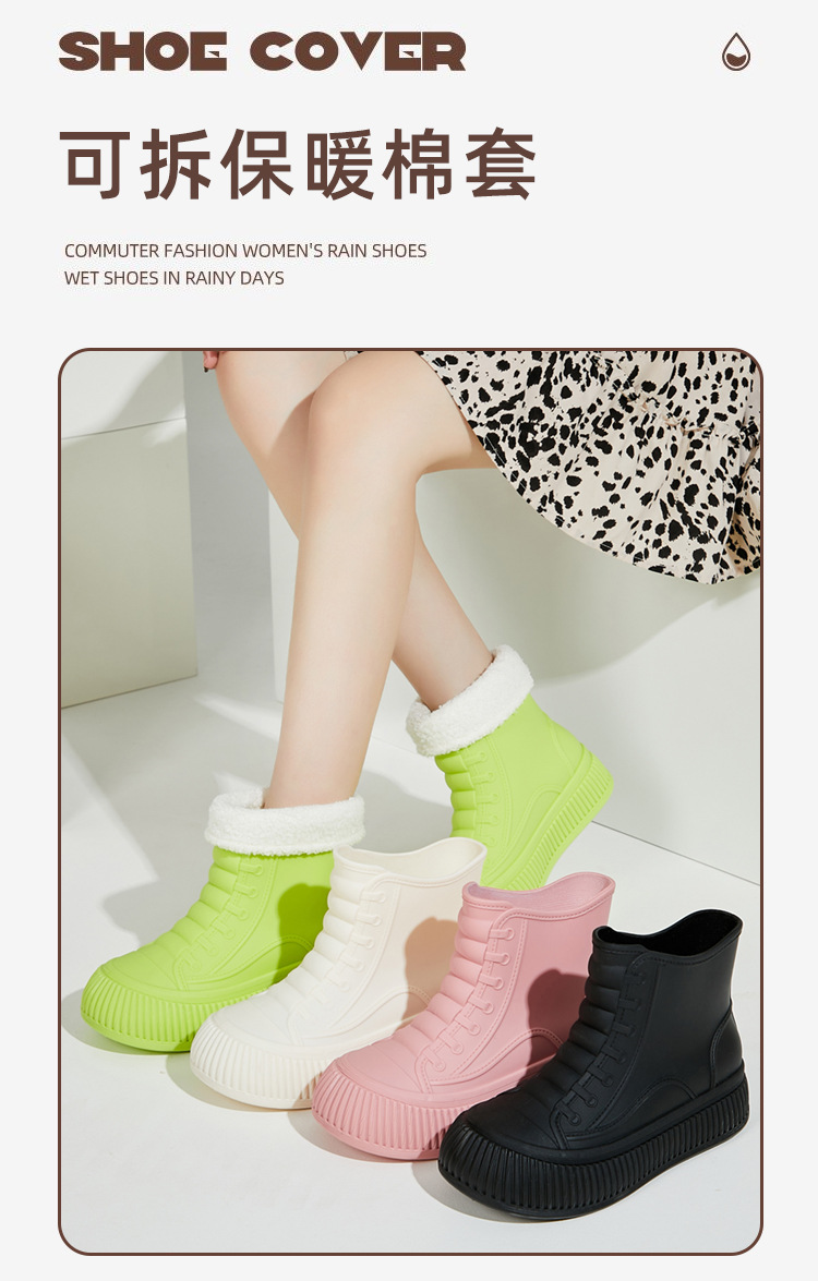 Новая женская водяная обувь внутри водонепроницаемая дождевая обувь нескользящая дождевая сапога короткая модная корейская резиновая обувь водная сапога трансграничный экспорт