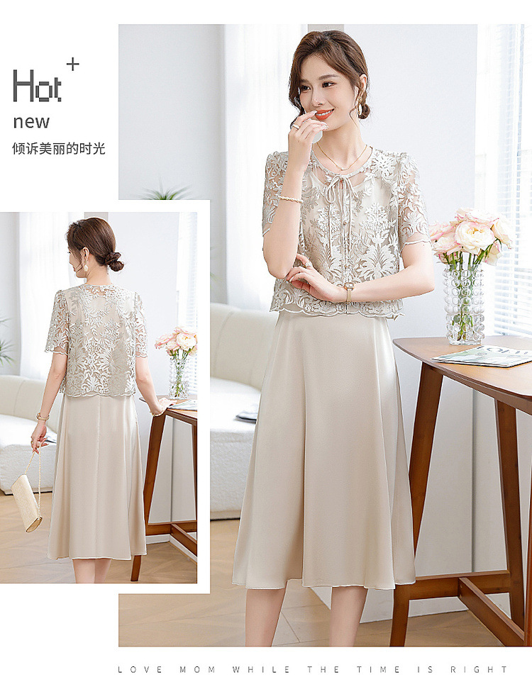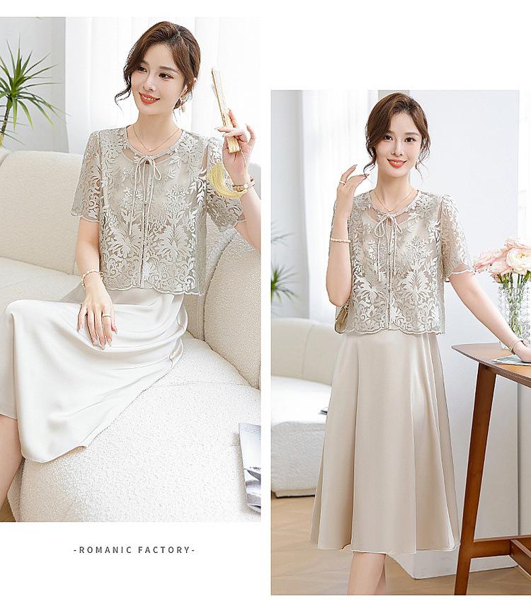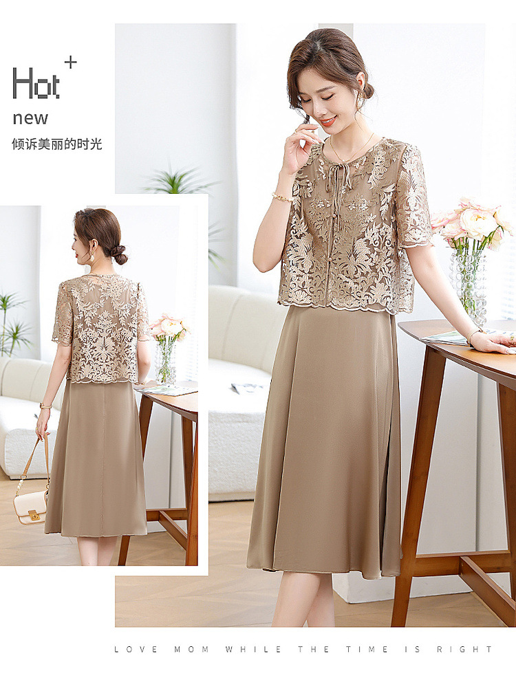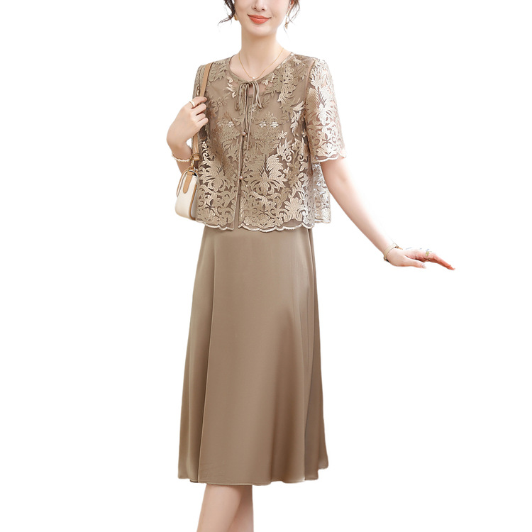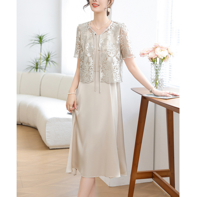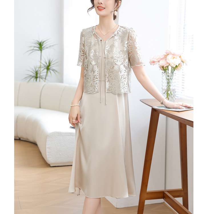 Китайское платье-двойка для женщин, новинка 2024 года, летнее элегантное платье для мам, модное платье для женщин среднего возраста