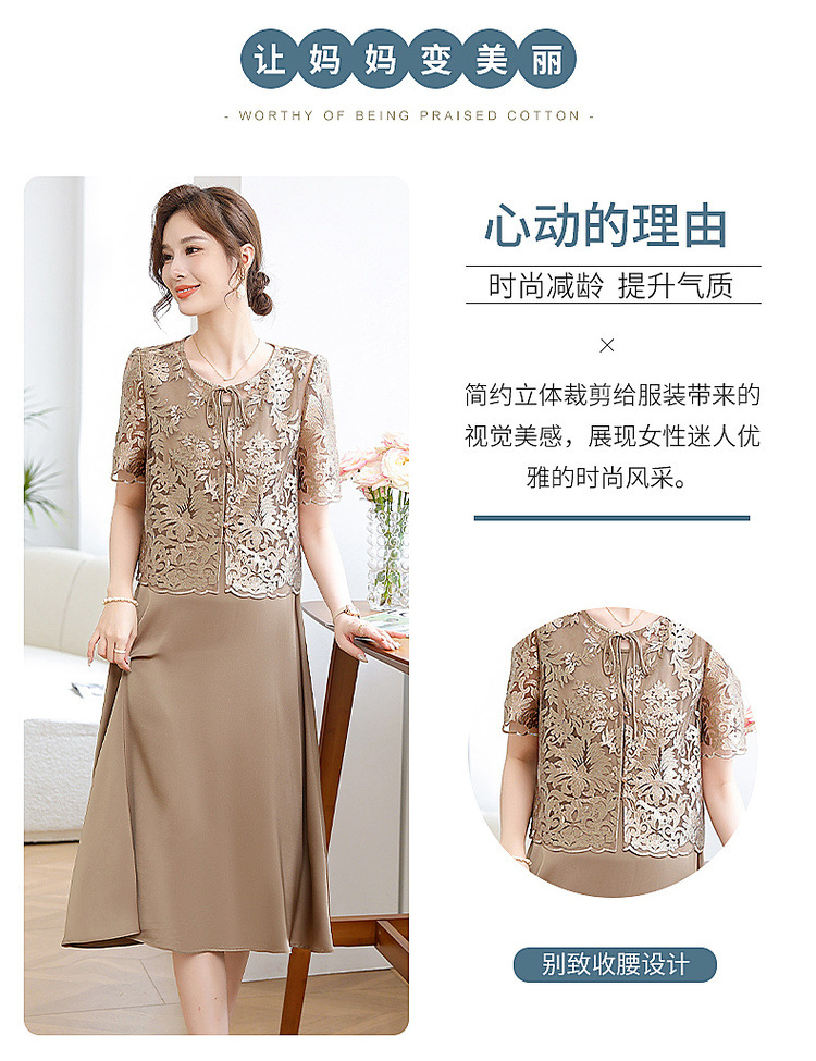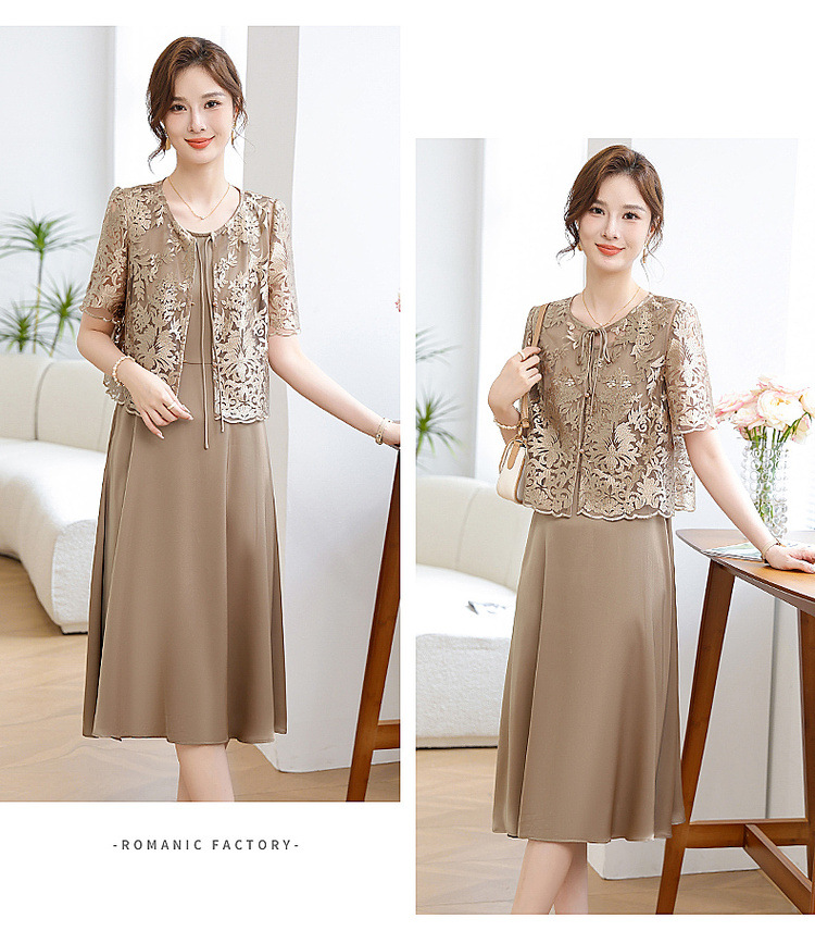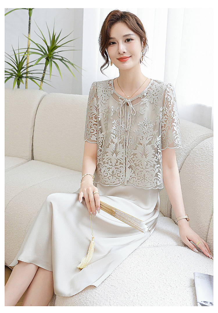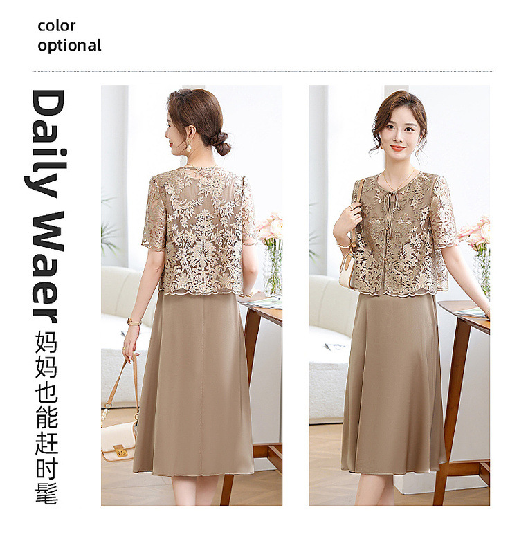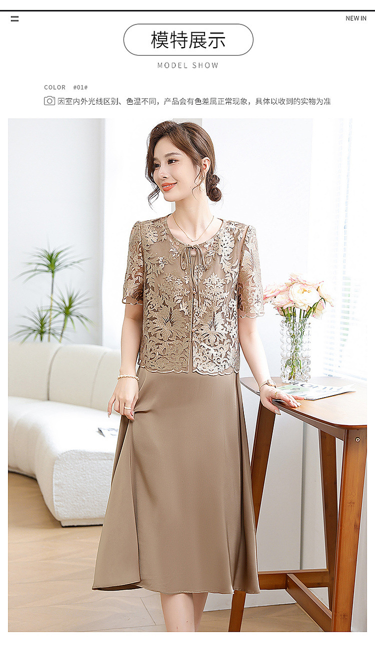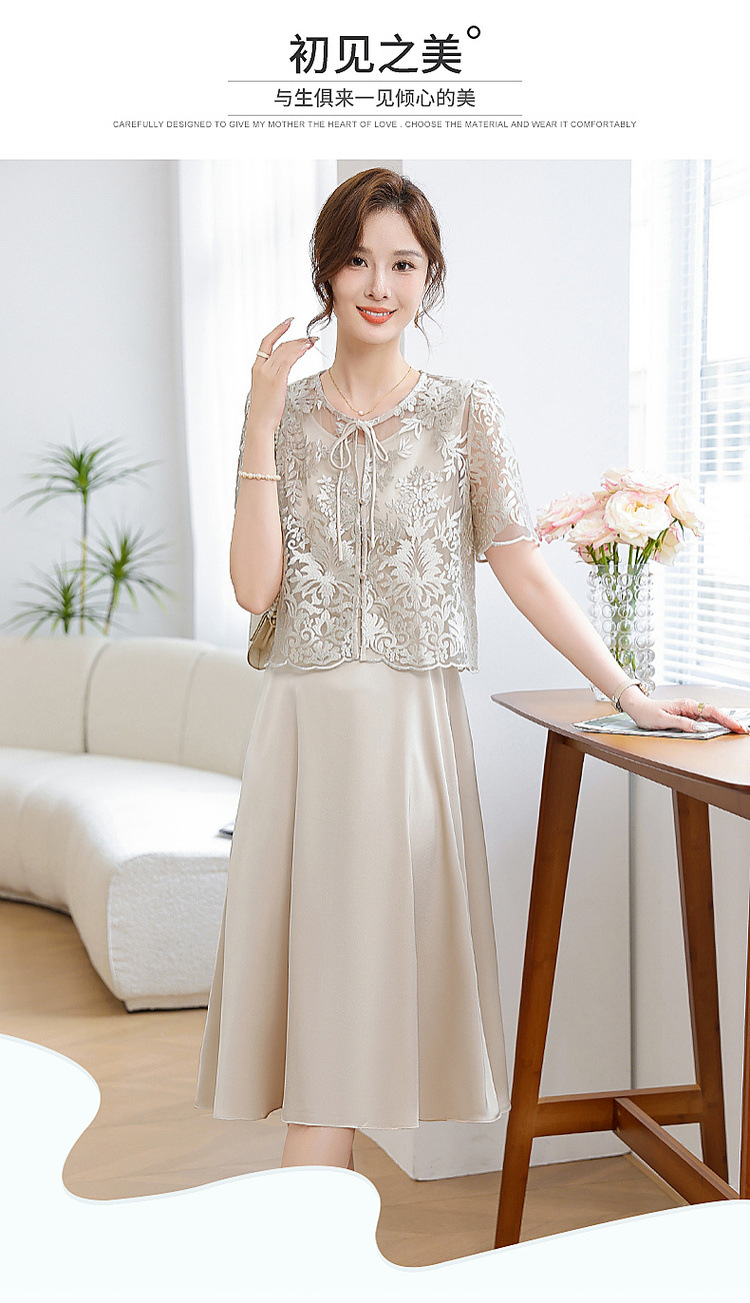 Китайское платье-двойка для женщин, новинка 2024 года, летнее элегантное платье для мам, модное платье для женщин среднего возраста