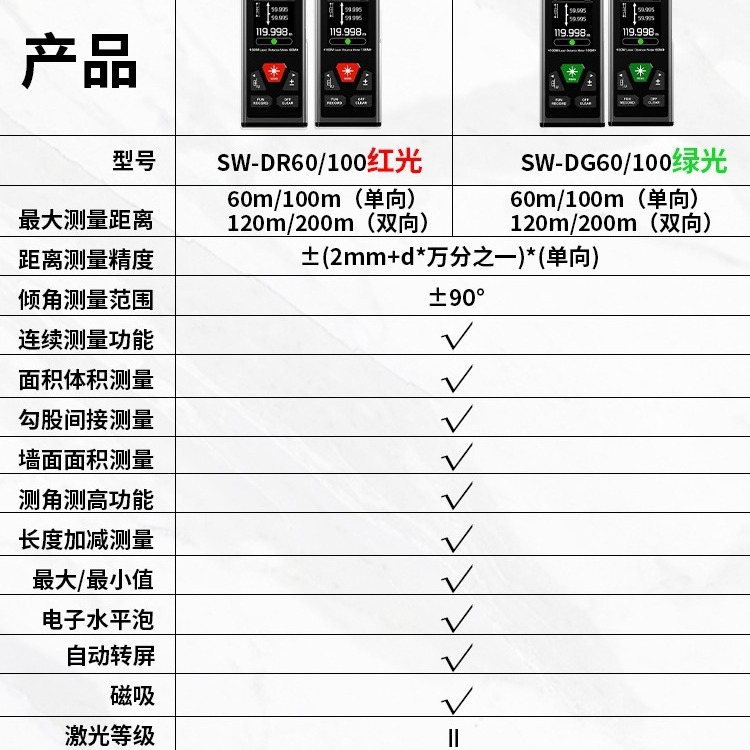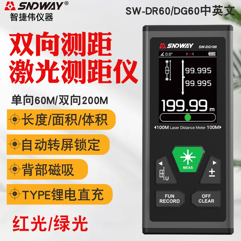 Двухсторонний лазерный дальномер Shenzhen Dawei Высокоточный инфракрасный электронный линейка наружный портативный зеленый световой измеритель расстояния
