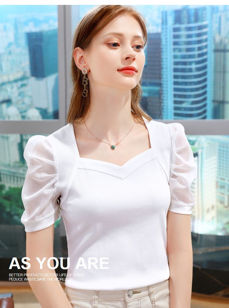 Футболка из ледяного шелка женская летняя новая рубашка с короткими рукавами рубашка с пузырьками рукава повседневная тонкая и дикая женская одежда оптом