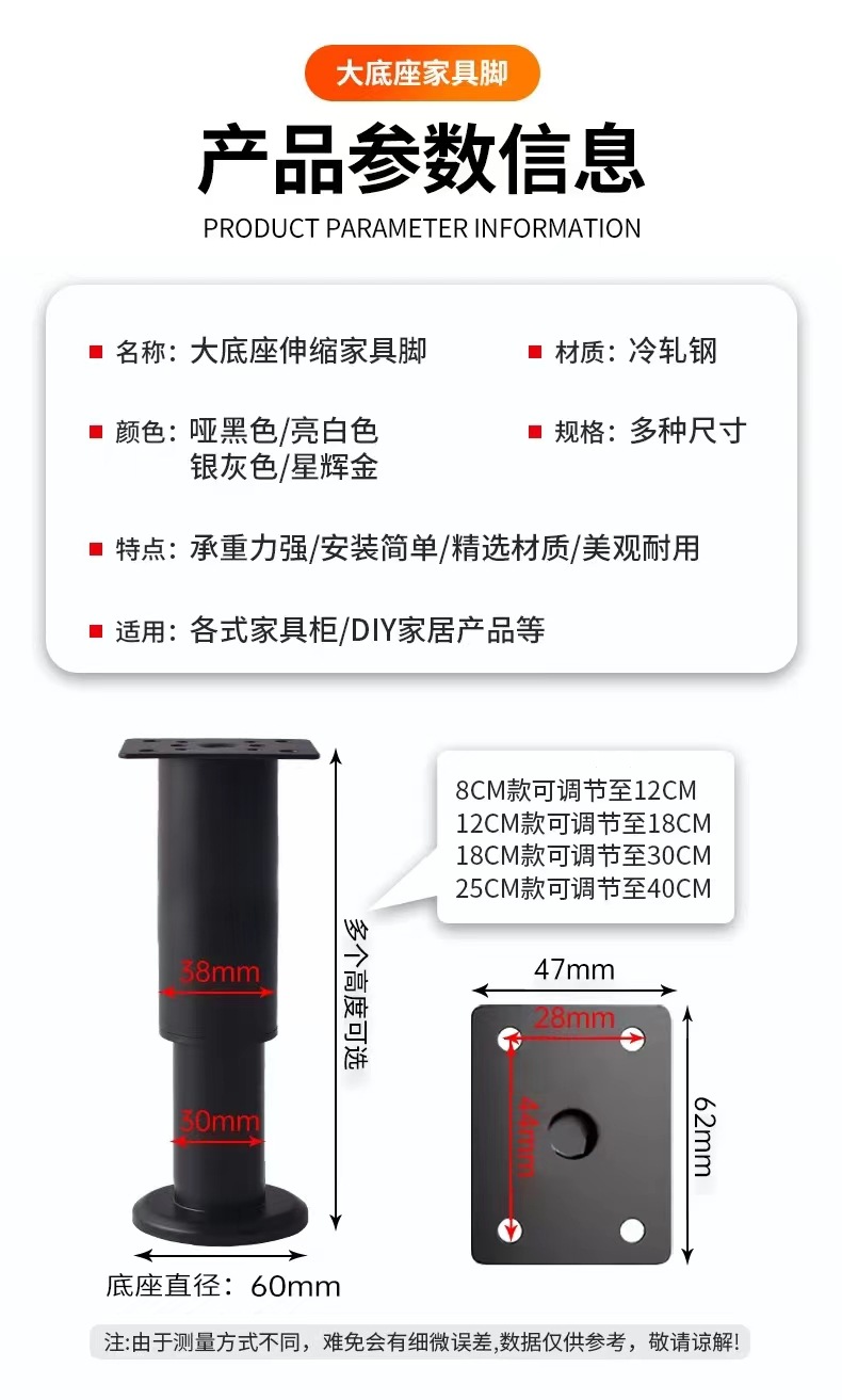 Отрегулируемая опора без перфорации, поддерживаемая ножка, телевизионный шкаф, кофейный столик, телескопическая, несущая основа, диван, ножки, повышенные ноги