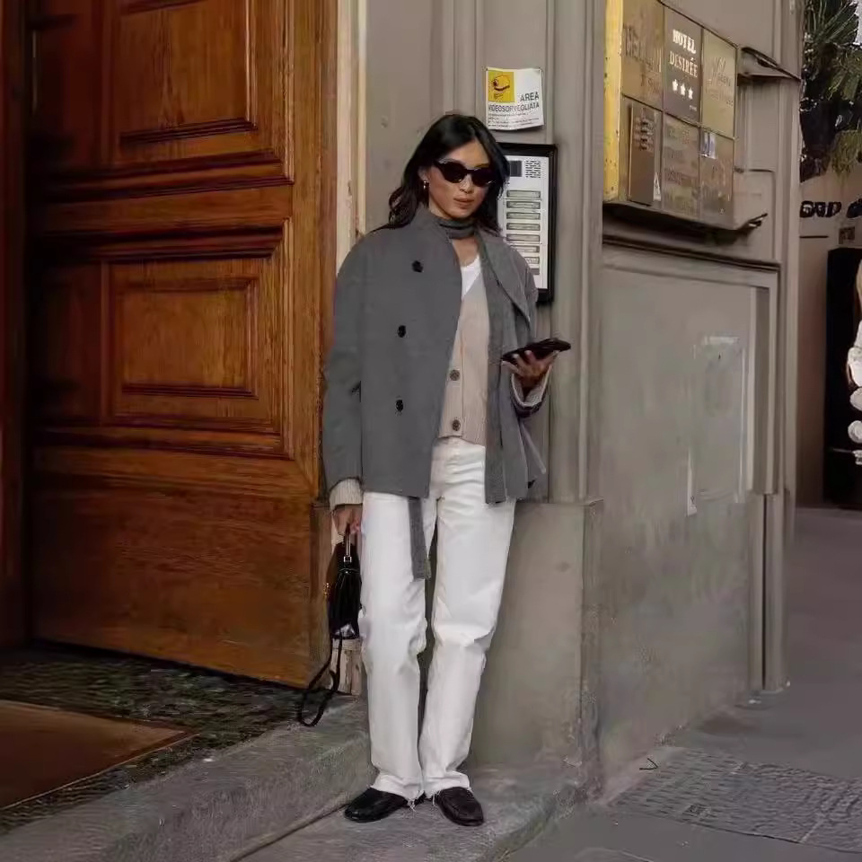 Готовая женская двубортная однотонная шерстяная верхняя одежда европейского размера, повседневный элегантный универсальный топ в британском стиле для женщин
