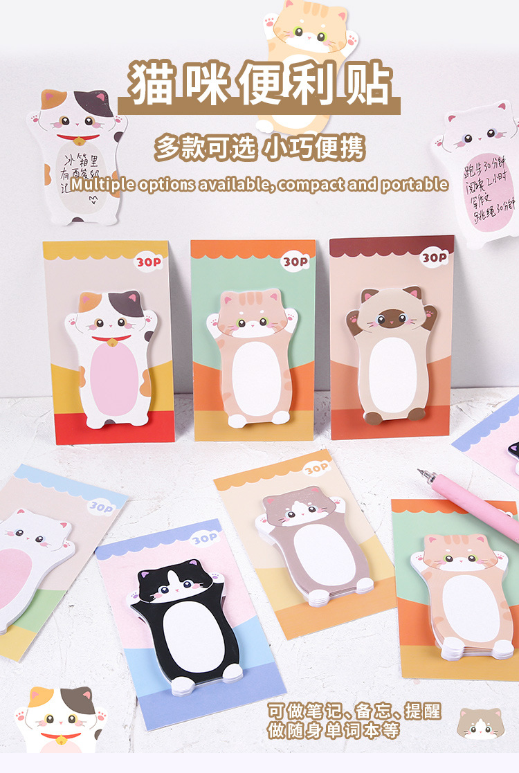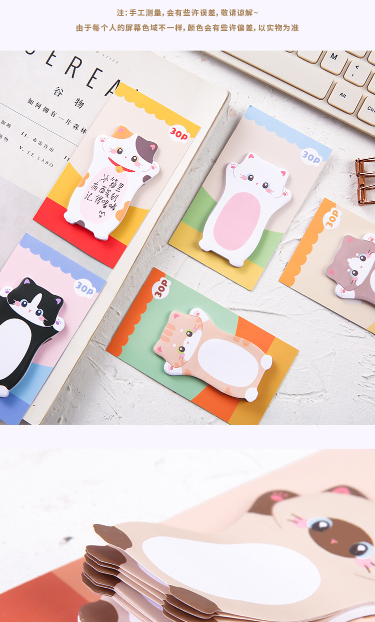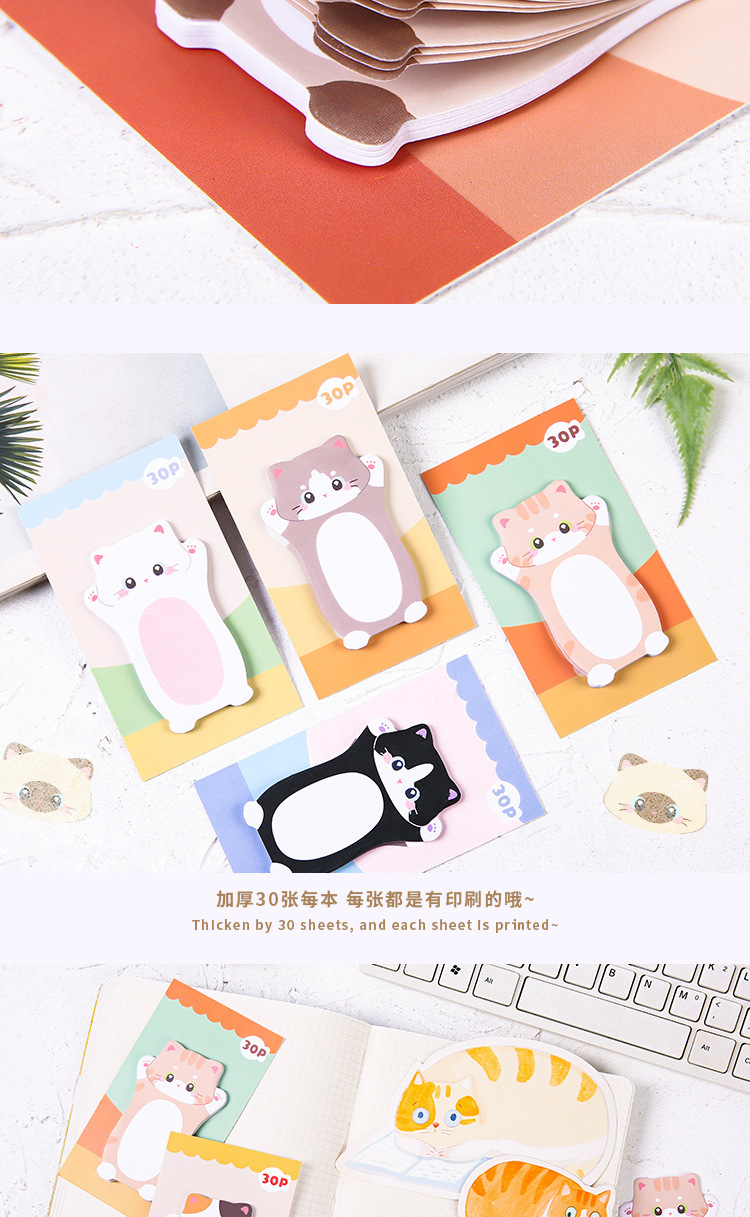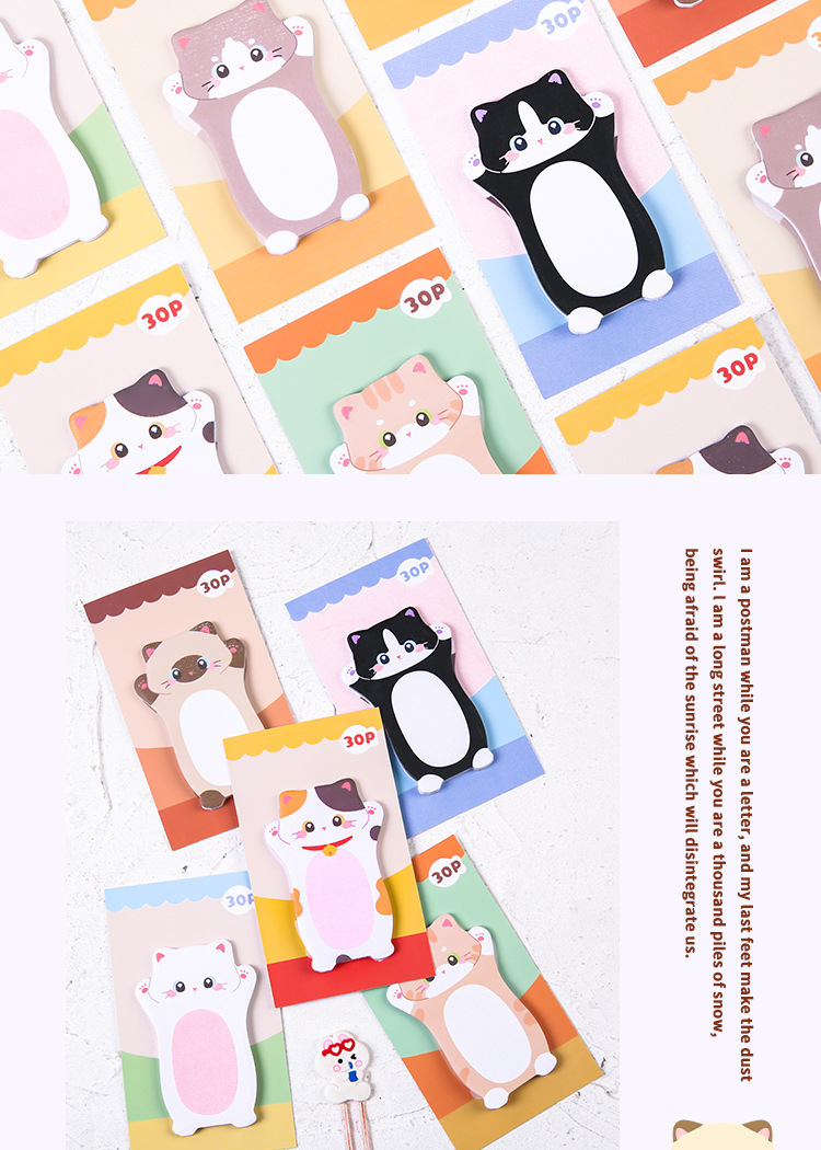 Многоразовые стикеры в форме мультяшных животных: милые котики для заметок, сообщений и заметок для студентов и офиса