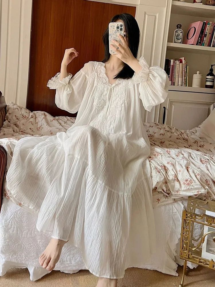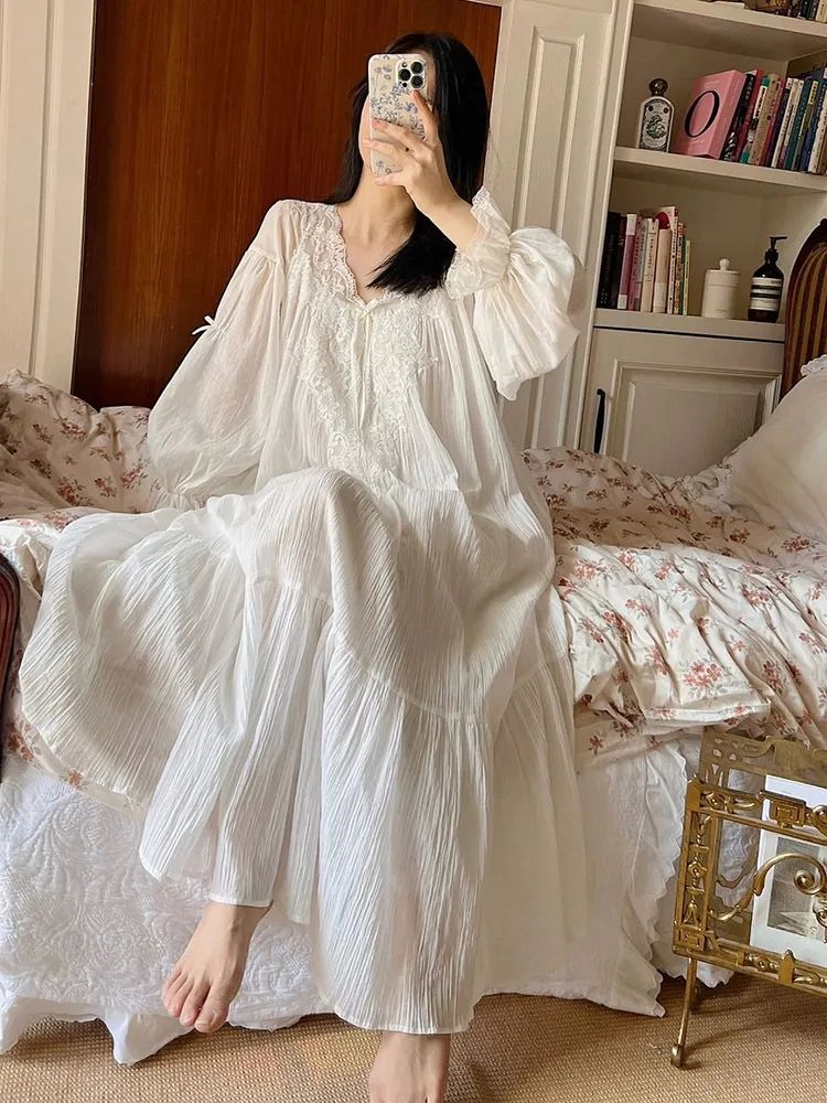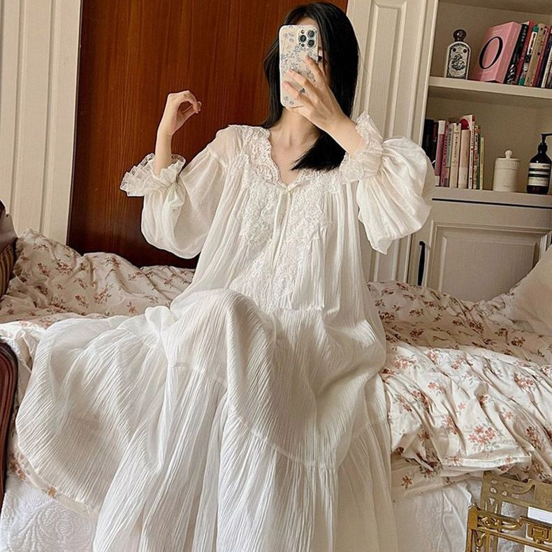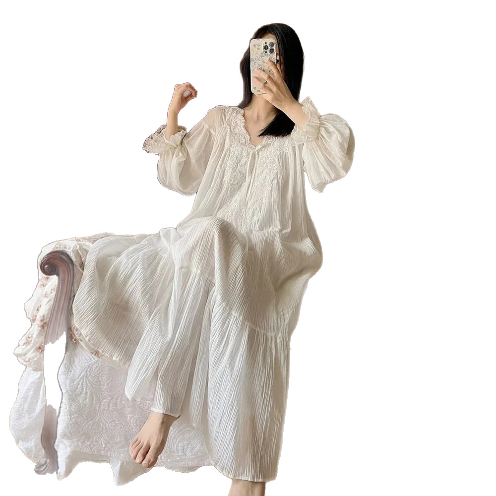 300 фунтов большого размера придворного стиля с длинными рукавами пижамы женская весна и осень свободная толстая мм200 домашнее платье платье