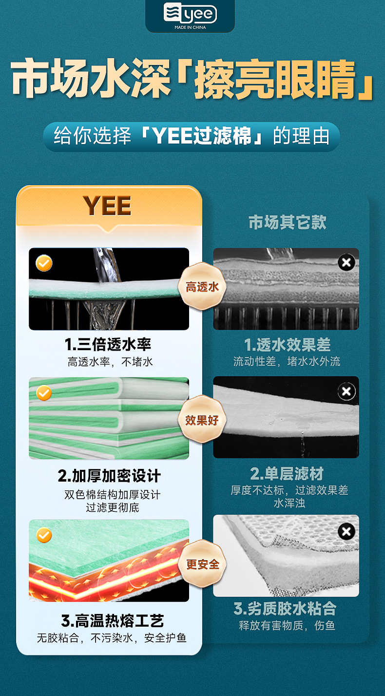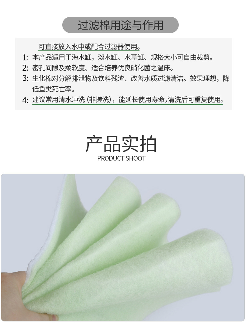 Yee аквариум фильтр хлопчатобумажный воздушный материал, бактериальный фильтр материал утолщенный зеленый белый с высокой плотностью очистки биохимический хлопок трансграничный