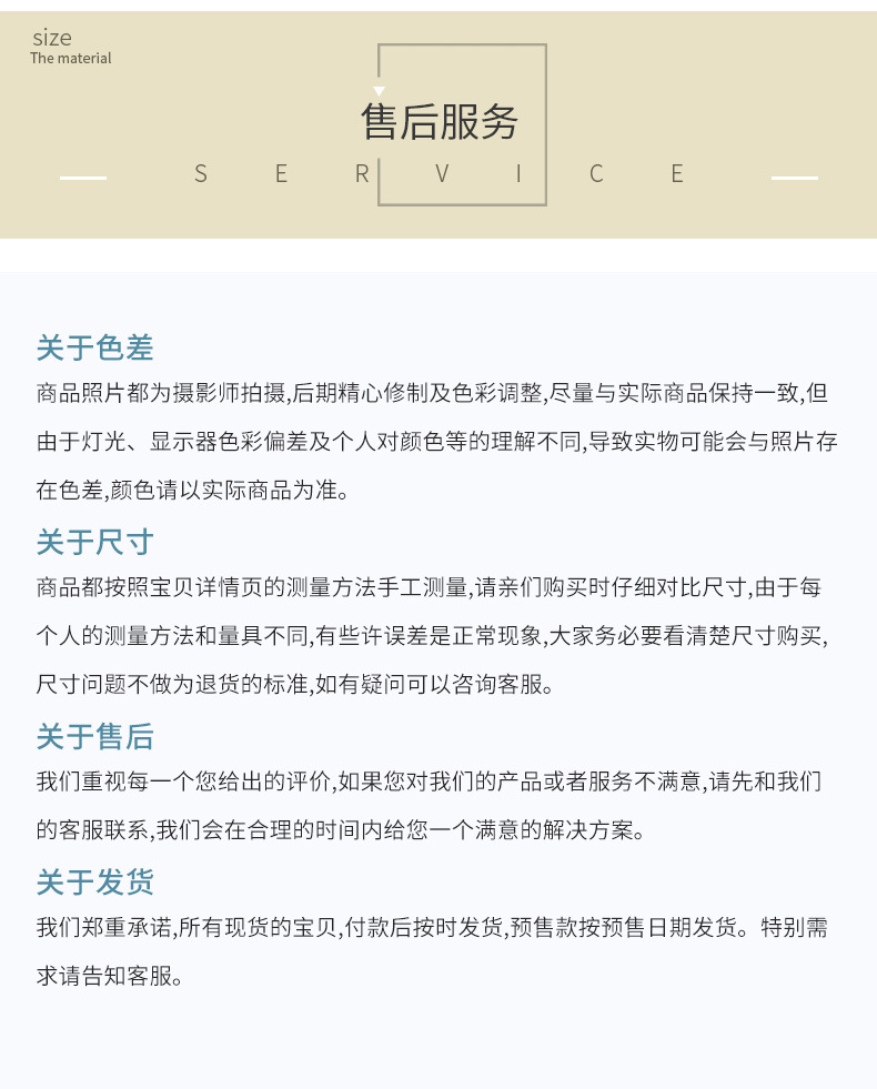 7. 付款成功后2-5天发货,缺货、节假日等特殊情况发货期将延长。