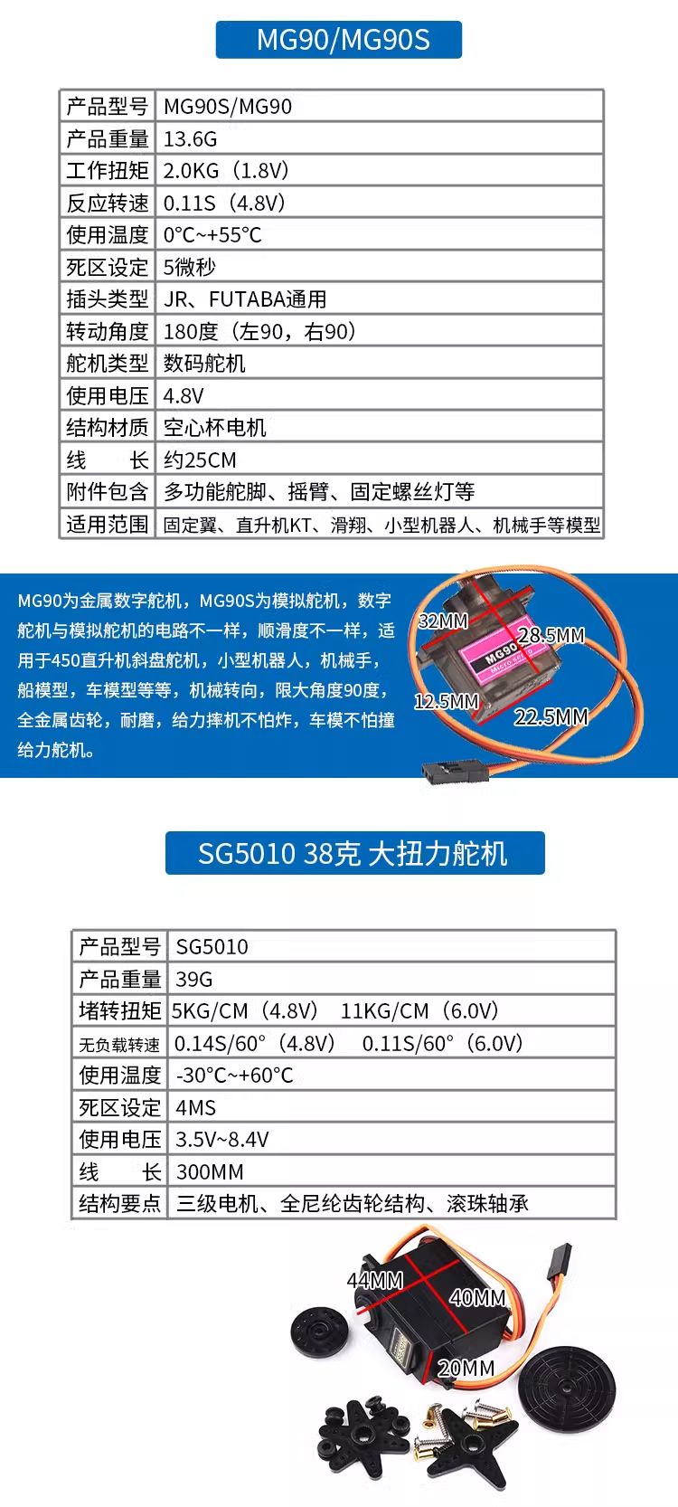 MG90S Металлический зубчатый рулевой механизм MG90S 3D Шуанфэй 450 Электрический прямой наклонный диск