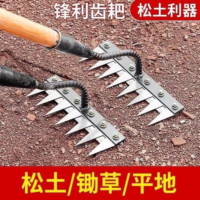 Многофункциональные грабли для ногтей из марганцевой стали, инструмент для прополки рыхления почвы, сельскохозяйственный инструмент, железная мотыга, грабли с пятью зубьями, скребок для прополки и точения