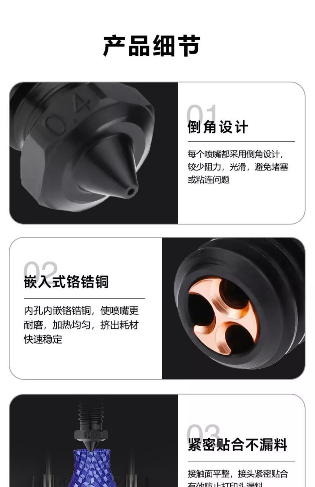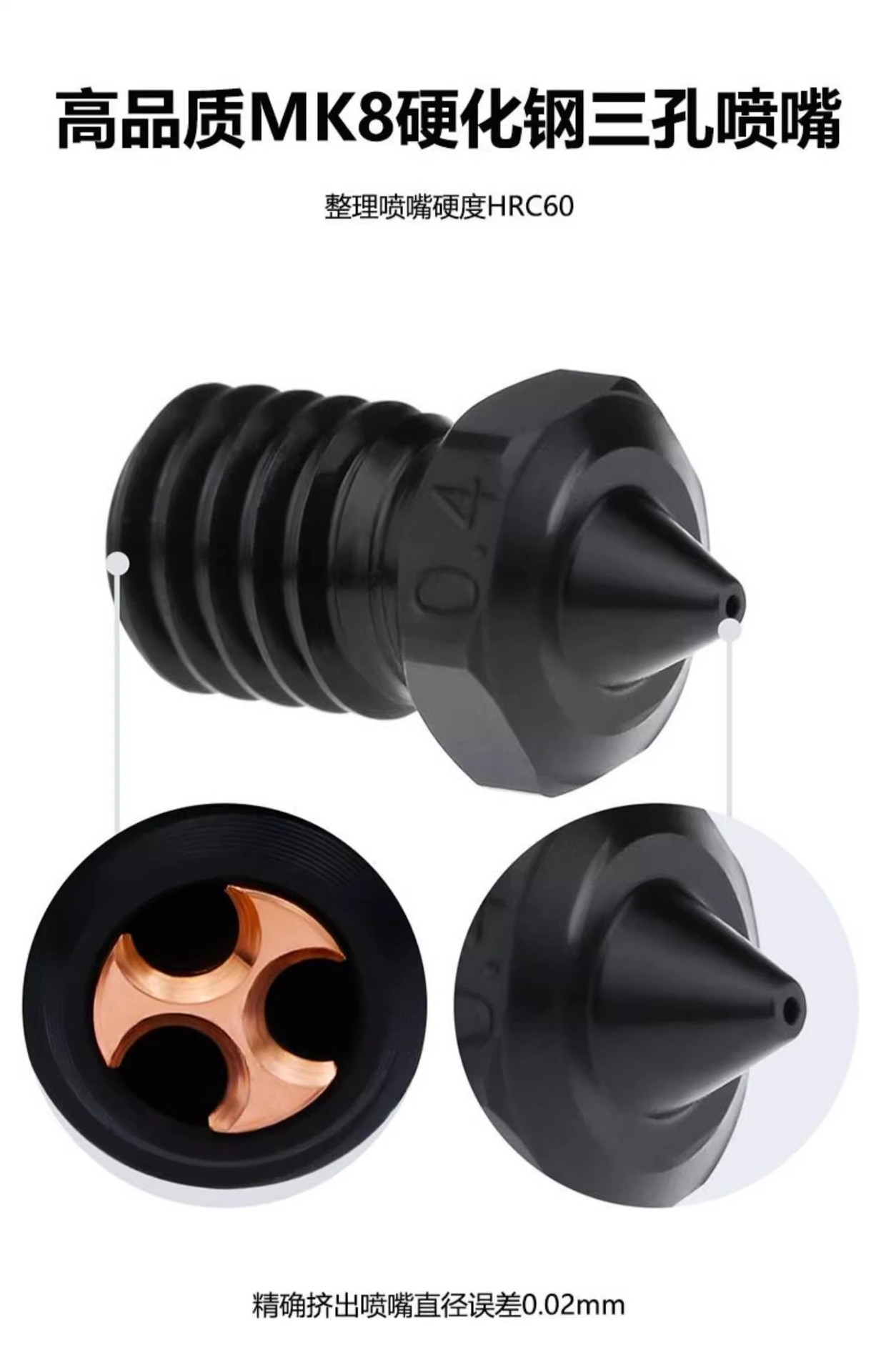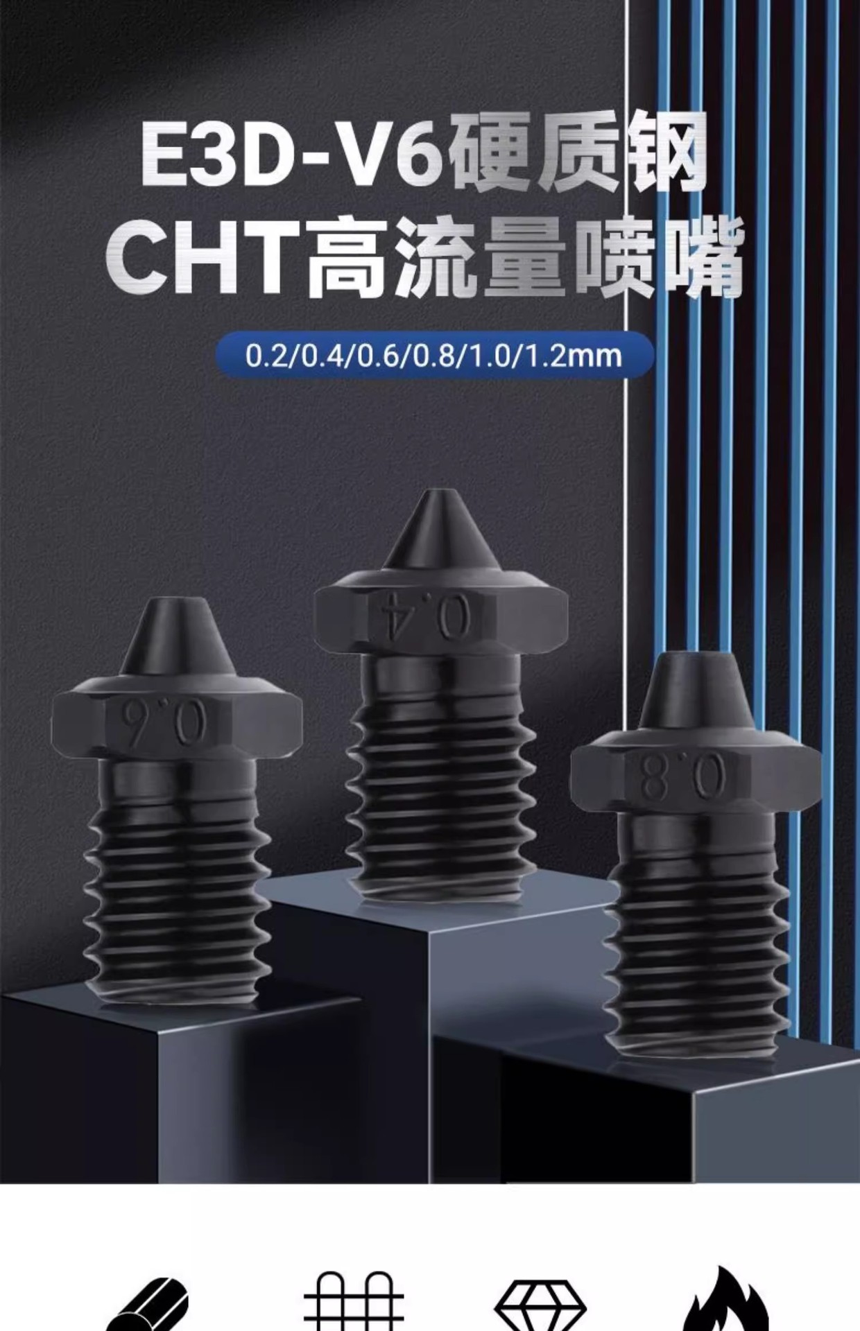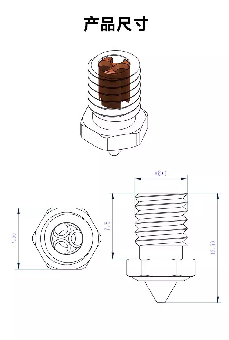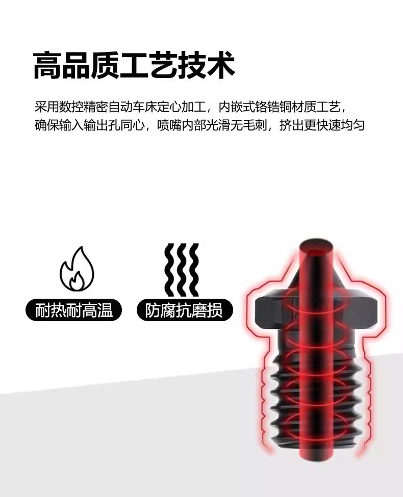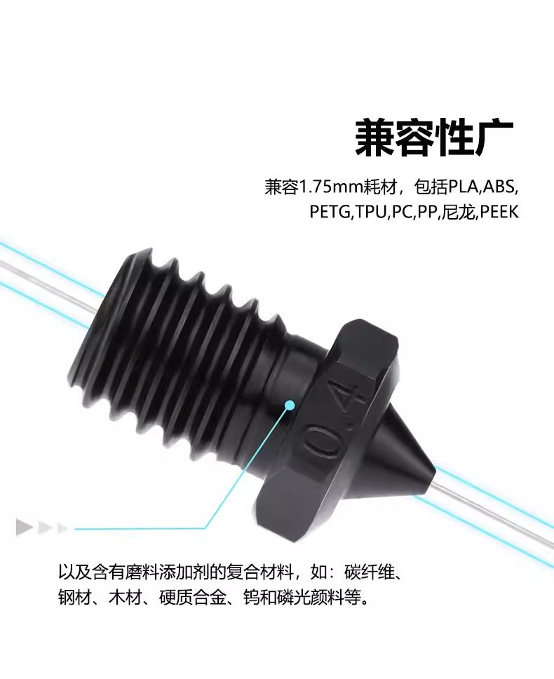 V6 CHT с тремя отверстиями закаливающая сталь сопла 0,2 MM; V6 CHT трехлунный закалый стальной сопло 0,4 MM; V6 CHT трехлунный закалый стальной сопло 0.6MM; V6 CHT с тремя отверстиями закалена стальная сопла 0.8MM
