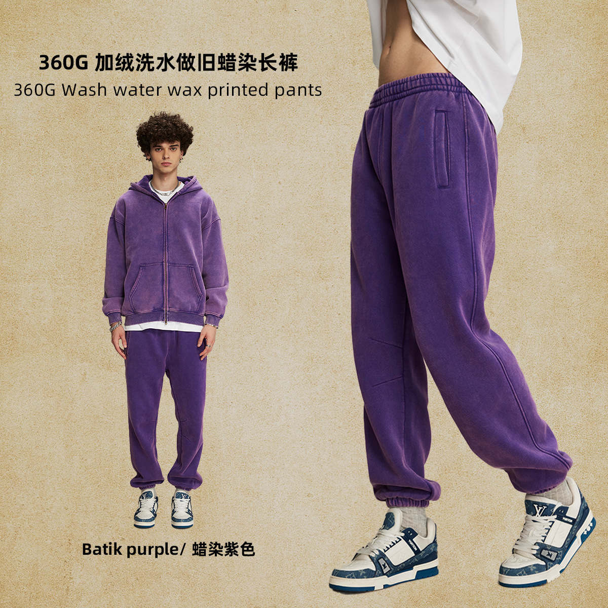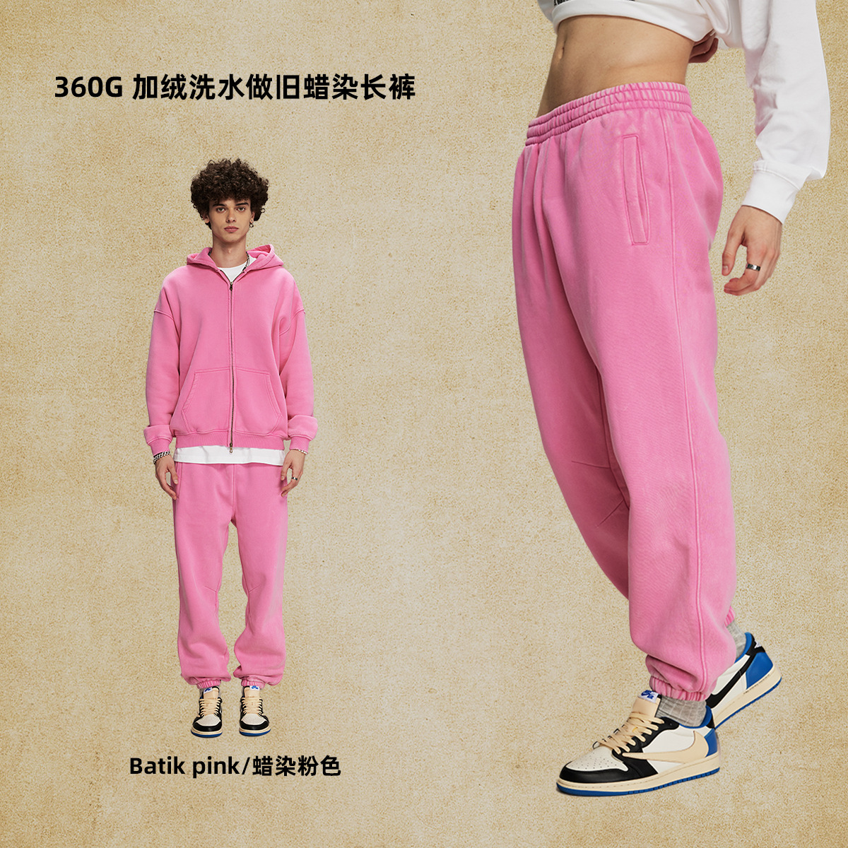 2024 осень-зима новый продукт 360 г американский прилив плюс бархатный батик ретро брюки для ног мужские свободные мужские спортивные брюки