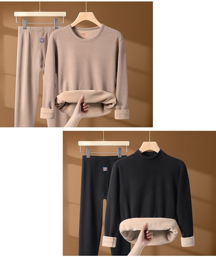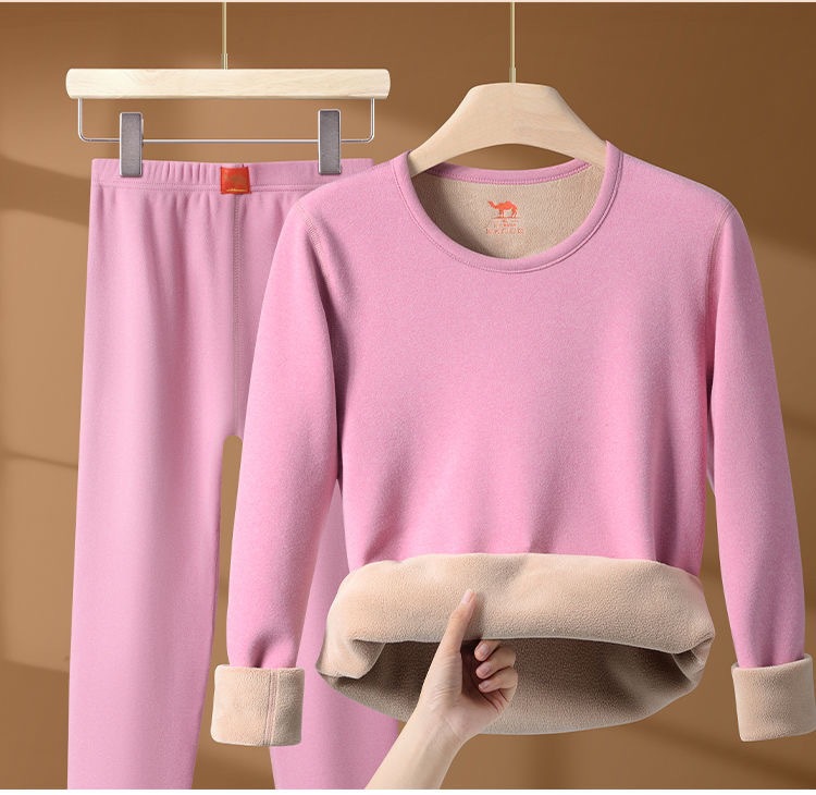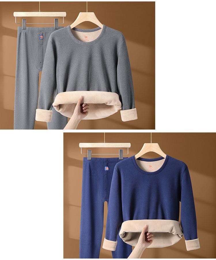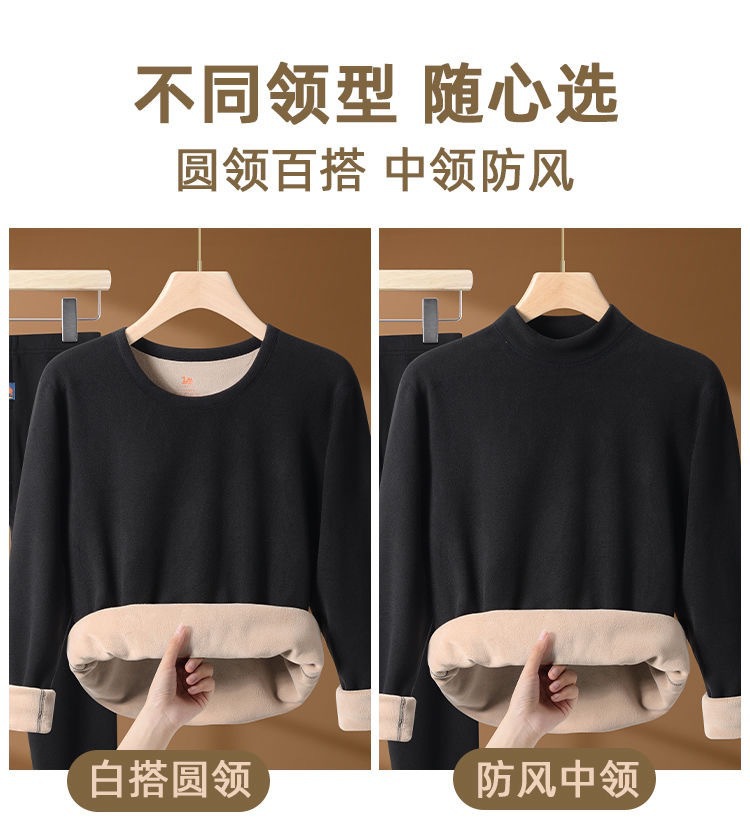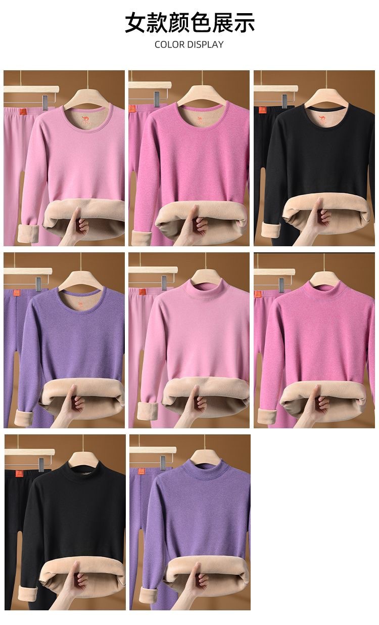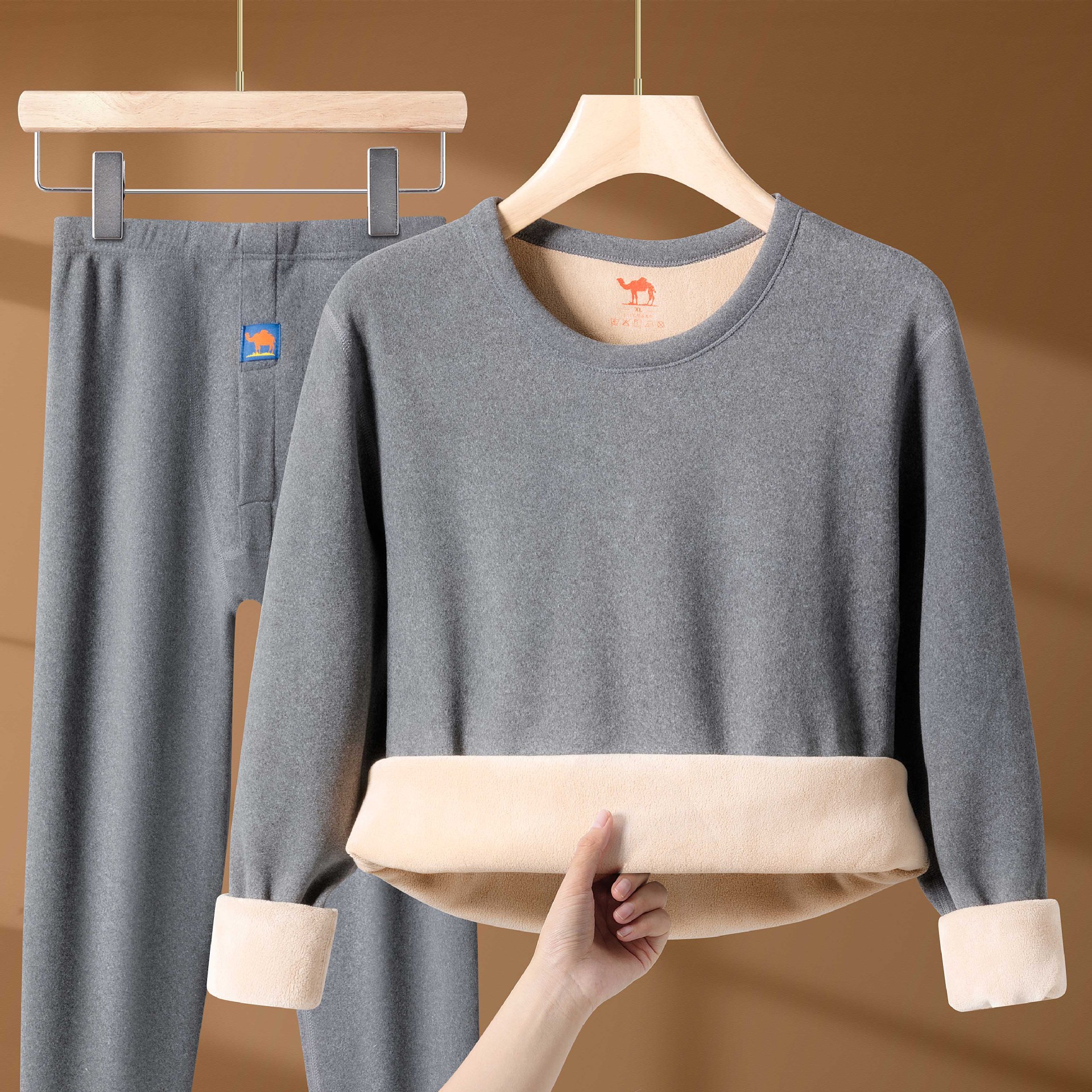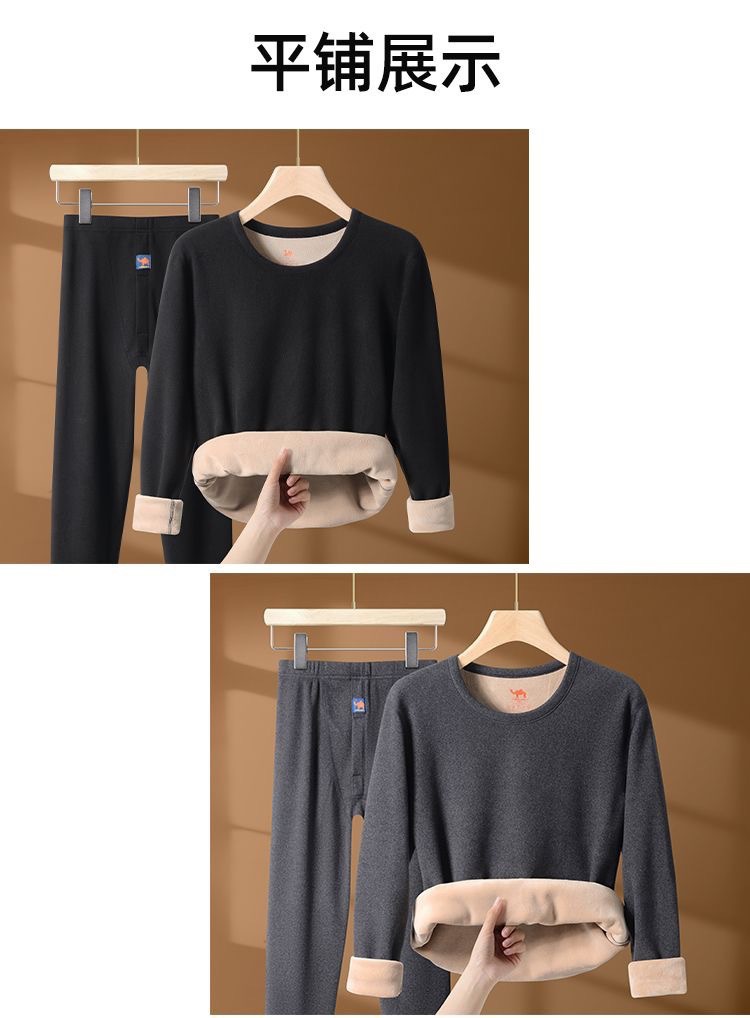 [Горбатый бархат] Зимний комплект термобелья с круглым вырезом для мужчин и женщин с толстым бархатом, предотвращая холод и нагрев, осенняя одежда и осенние брюки