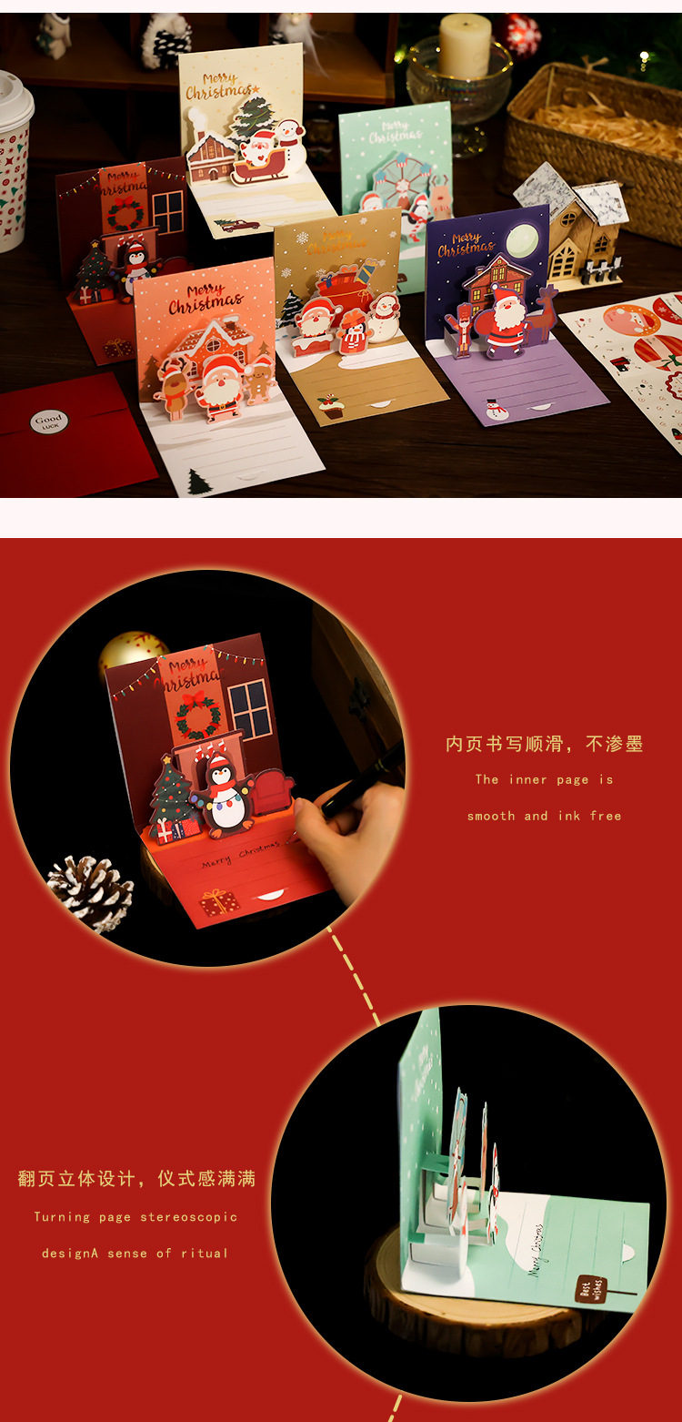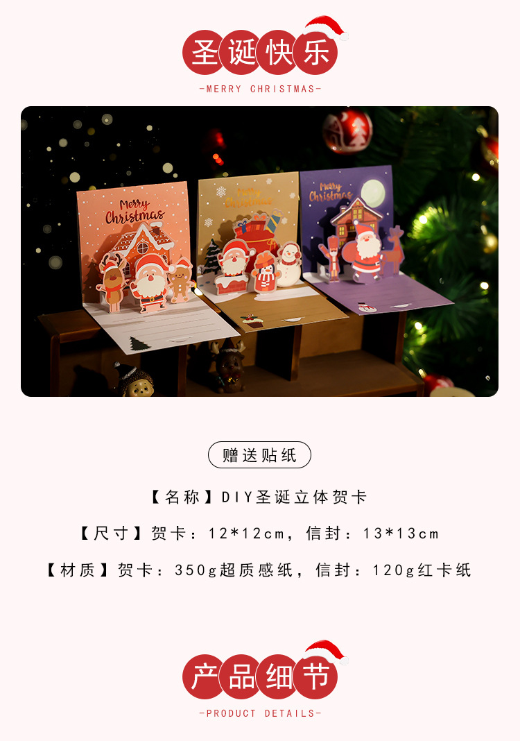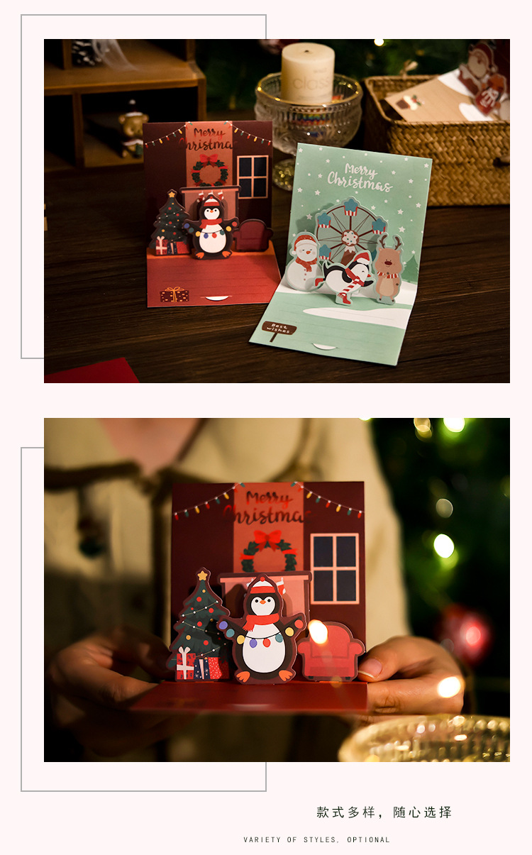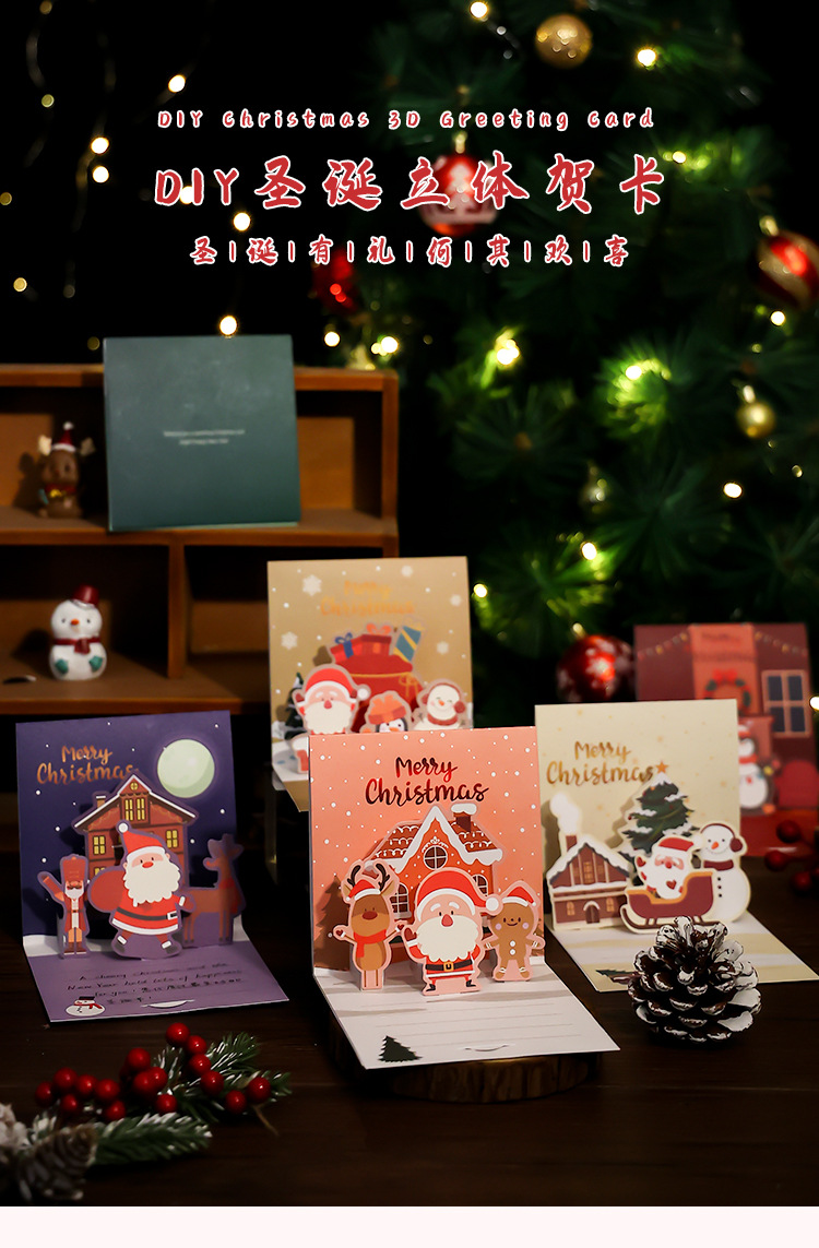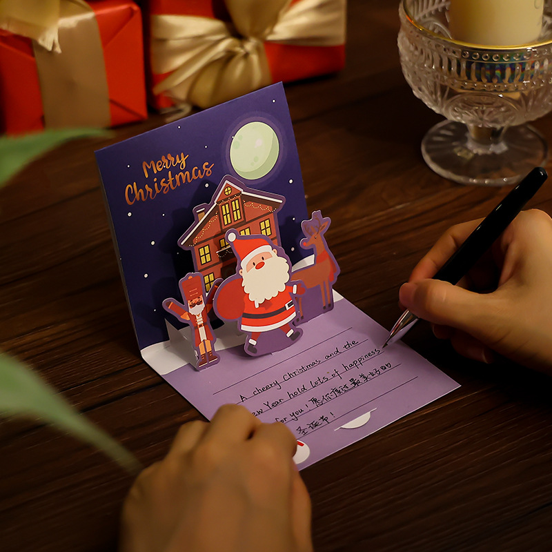 Рождественская трехмерная открытка diy сочельник подарок мультфильм благословение рукописный