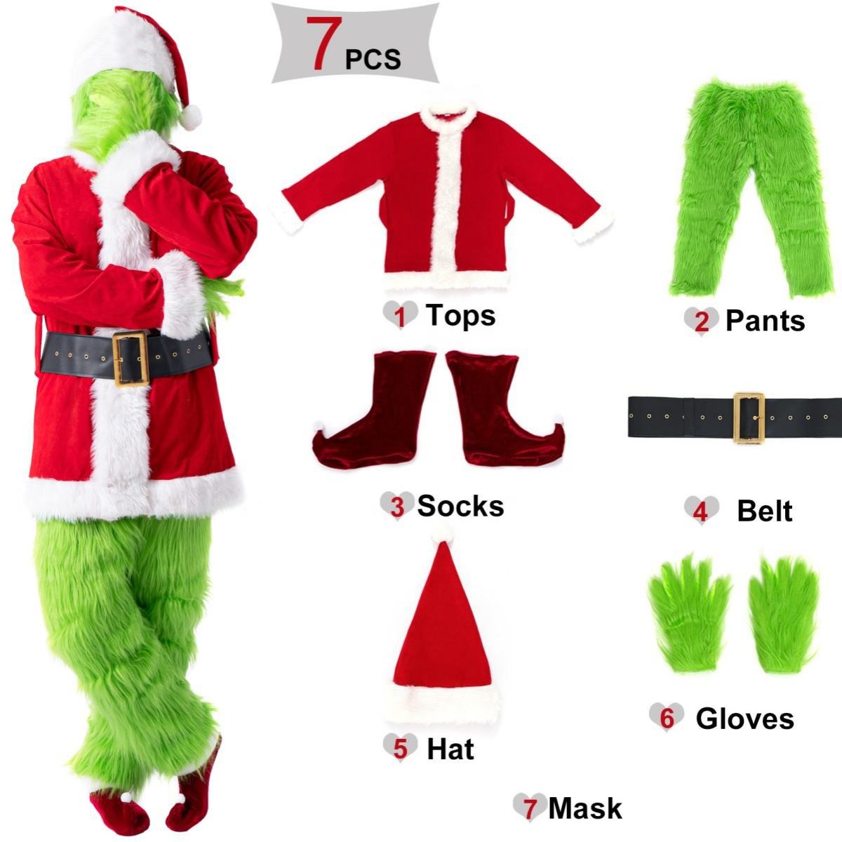 Полный комплект зеленого мехового монстра; Зеленый меховой монстр (топ + брюки + пояс + шапка + перчатки + бахилы); индивидуальная маска; Детская модель из зеленого меха-монстра (шапка + топ + брюки + бахилы + пояс); Зеленый меховой монстр (топ + меховые штаны + пояс + перчатки + манжеты; Зеленый меховой монстр (верх + пояс); Одиночные брюки-монстр из зеленого меха; Одиночные перчатки из зеленого меха-монстра; Зеленый меховой монстр (шапка + маска); Зеленый меховой монстр (шапка + маска + перчатки)