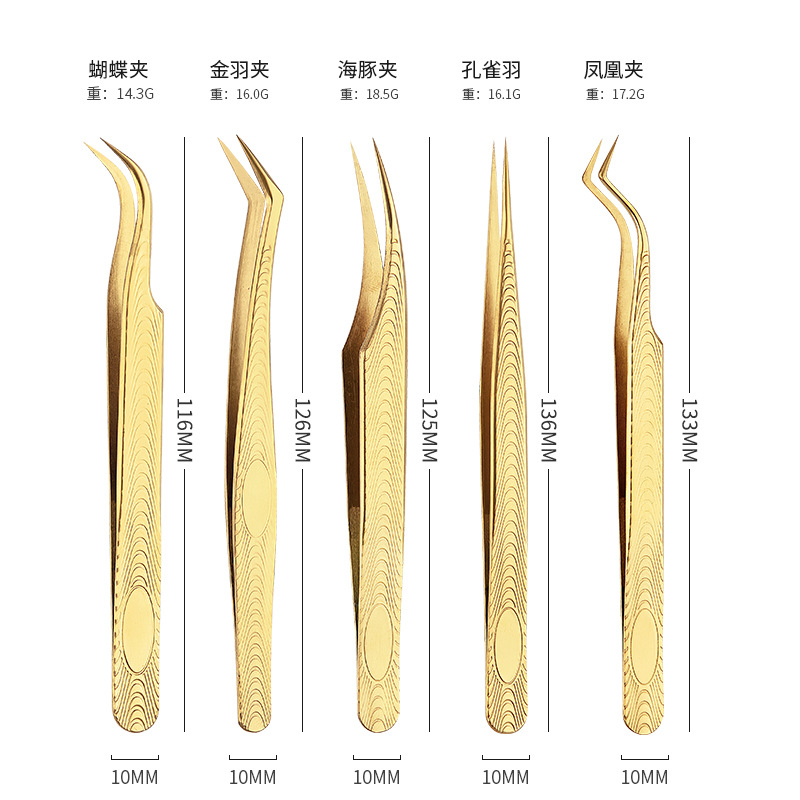 Золотая водяная рябь привитые ресницы пинцет высокая точность золотое перо зажим цветущий пинцет накладные ресницы пинцет завод оптом