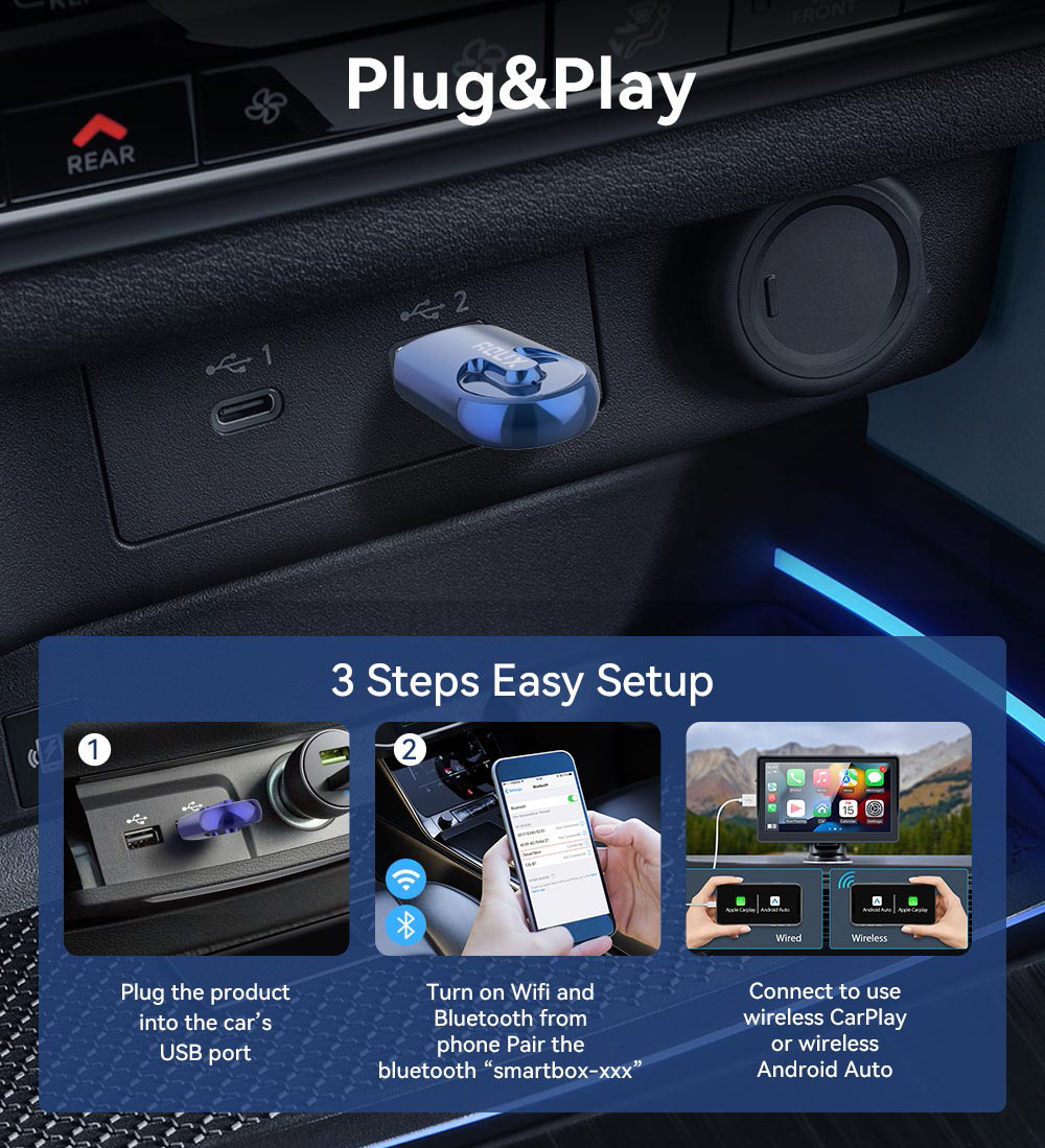 Беспроводной адаптер CarPlay и Android Auto 2-в-1 для автоматического подключения к автомобилю