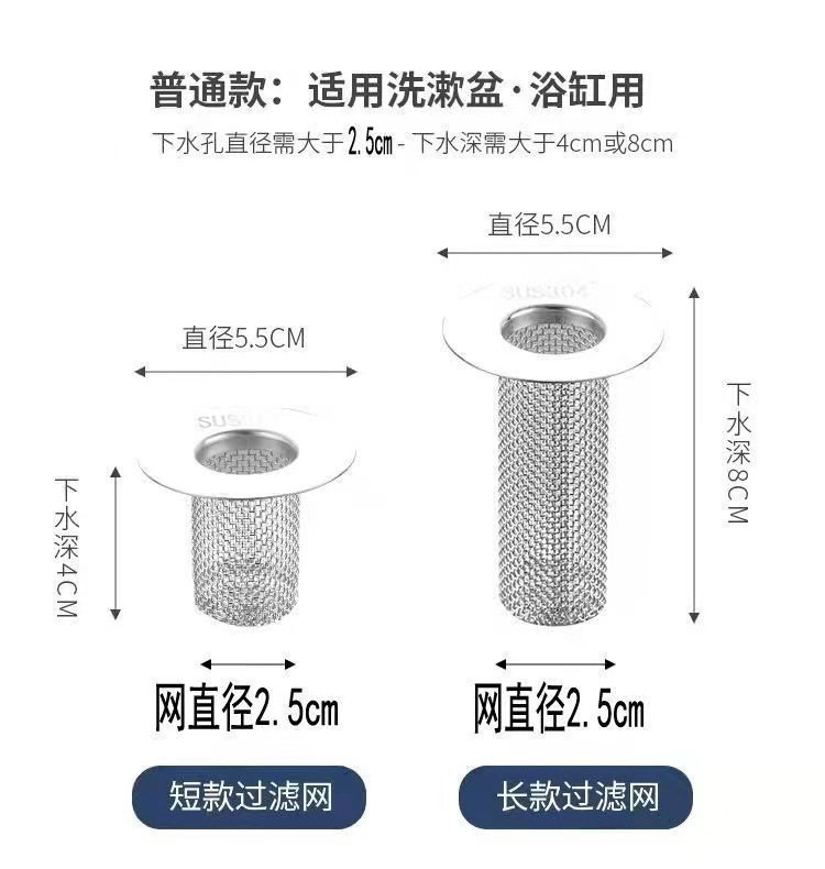 不锈钢毛发过滤网面盆卫生间地漏洗手池脸盆厕所下水管道防堵