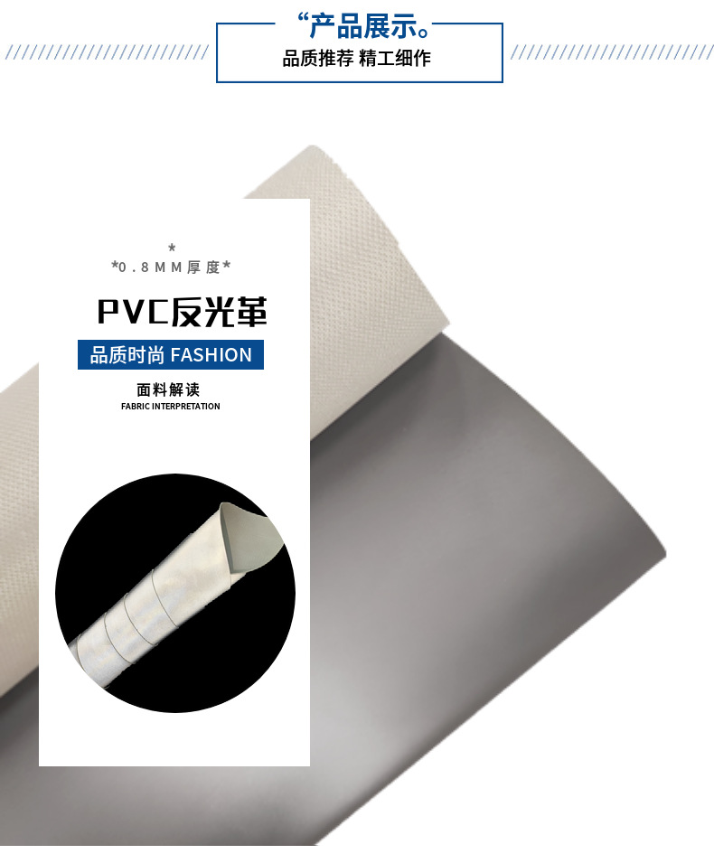 反光布系列:化纤(普亮 高亮) TC(普亮 高亮 亮银) 熔断 PVC革 (普亮 高亮)PU革发泡革 均有货 其他规格可定做