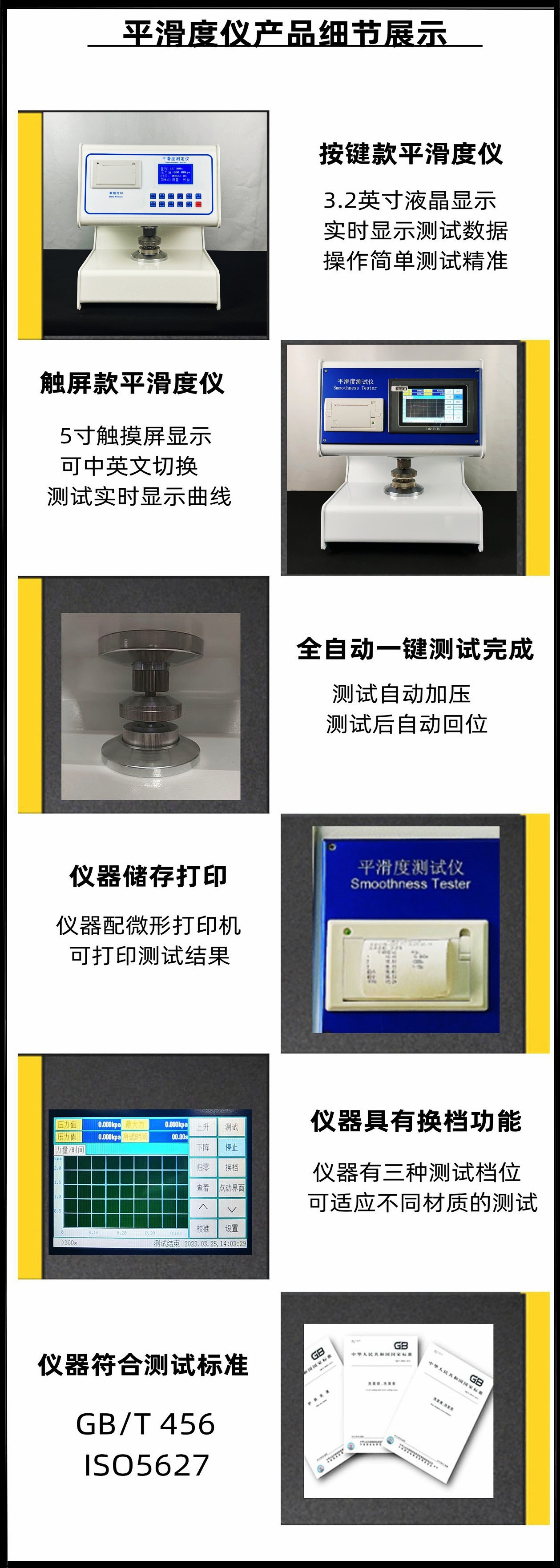 Используется для измерения гладкости поверхностей бумаги и картона. Это идеальное испытательное оборудование для производства бумаги, упаковки, печати, проверки товаров, научных исследований и других отделов.