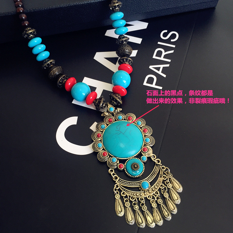 Европейские и американские ретро модные ожерелья богемный национальный стиль длинные преувеличенные колокольчики шерстяные цепи женские тибетские аксессуары