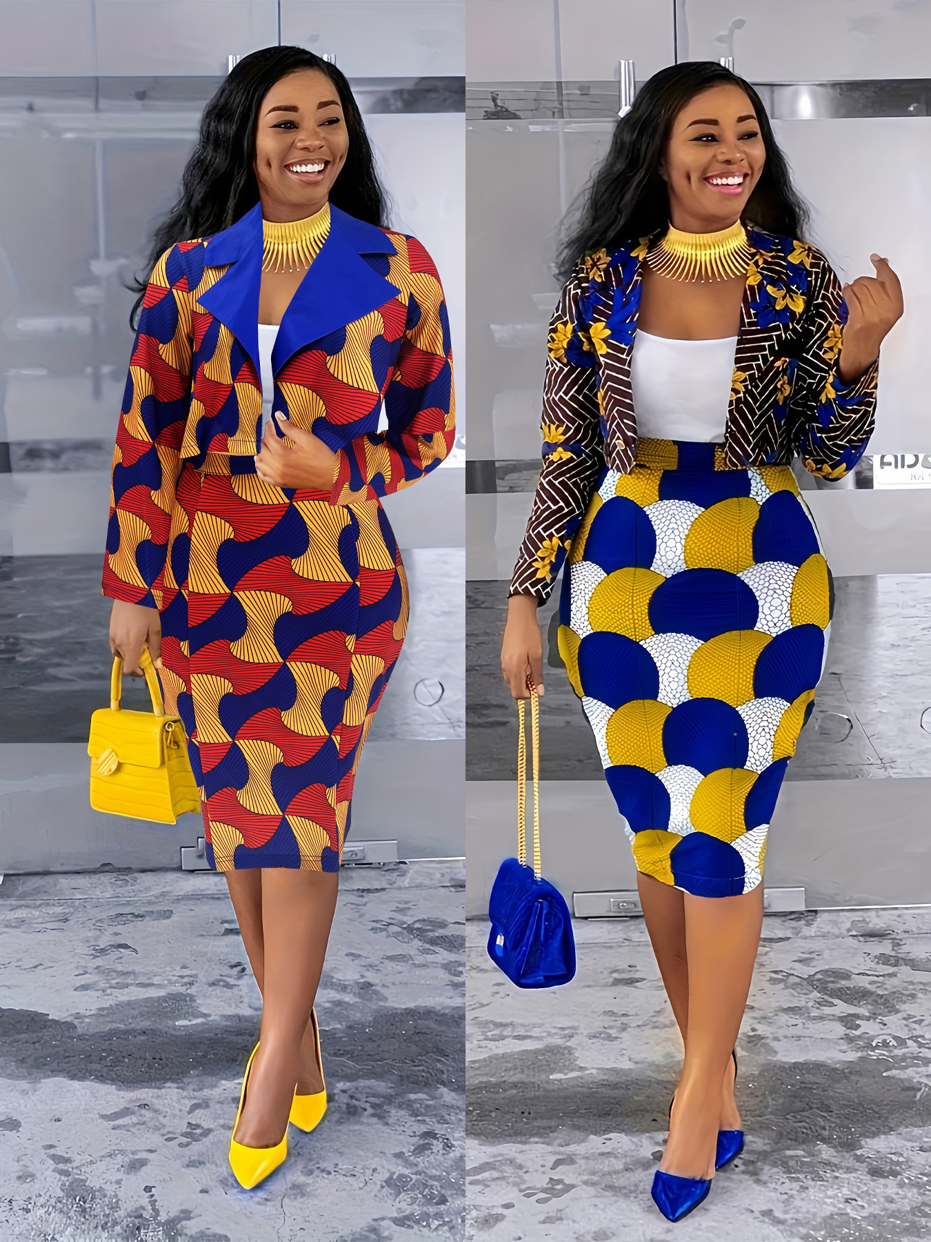 2538 элегантный темперамент модный принт маленький костюм юбка из двух частей женский