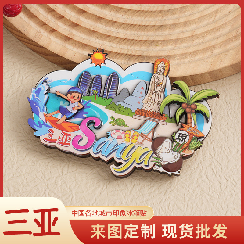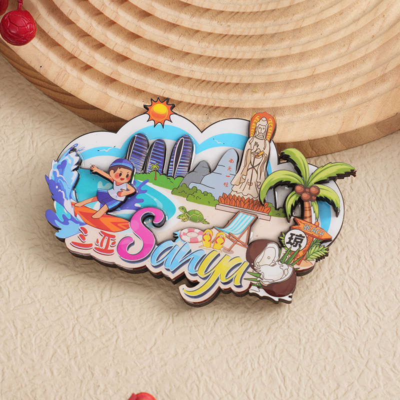 Санья Городская живописная местность деревянная капельная наклейка на холодильник культурный творческий подарок деревянный магнитный мультяшный ремесел оптом