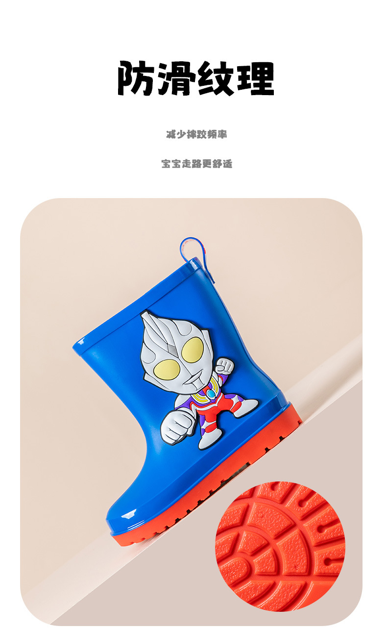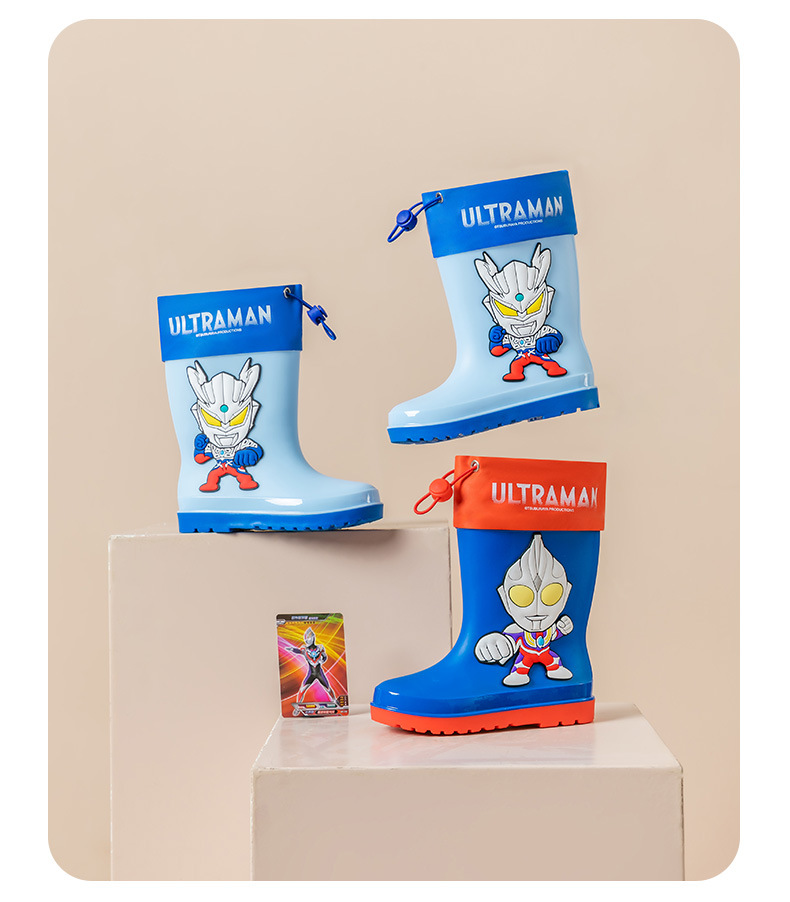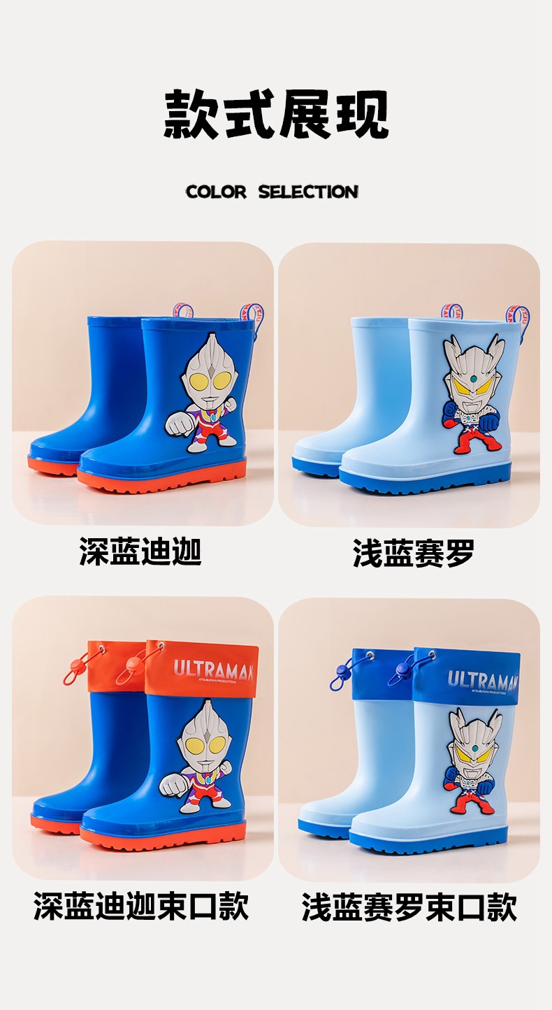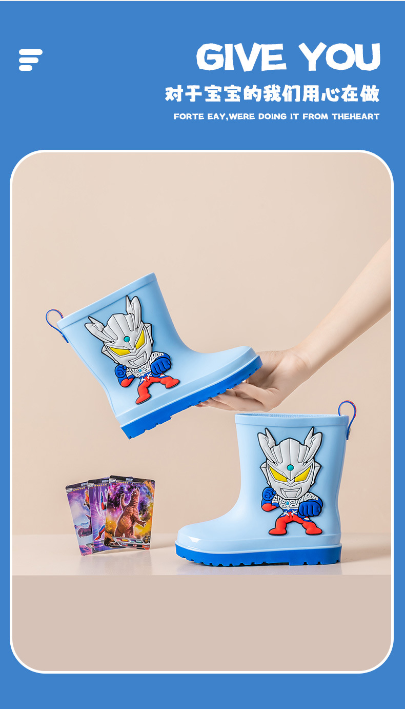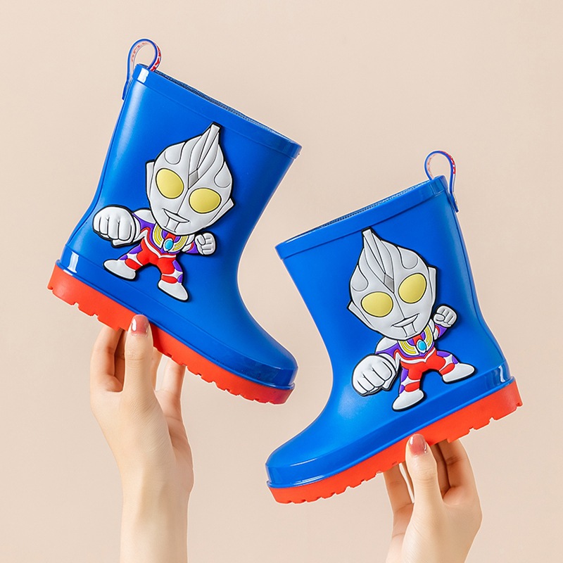 Натуральные детские резиновые сапоги Ultraman Tiga с героями мультфильмов, нескользящая обувь для воды средней длины для мальчиков, непромокаемые сапоги для учащихся начальной школы Zero, оптовая продажа