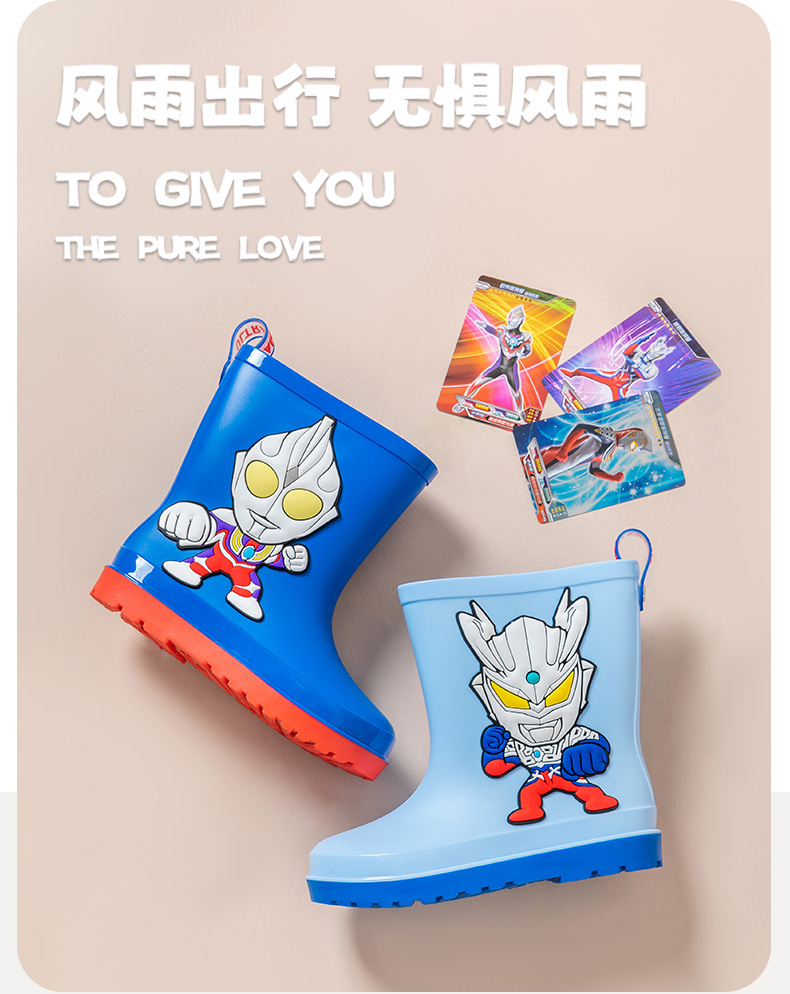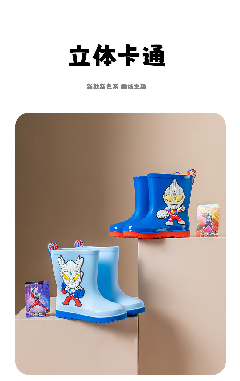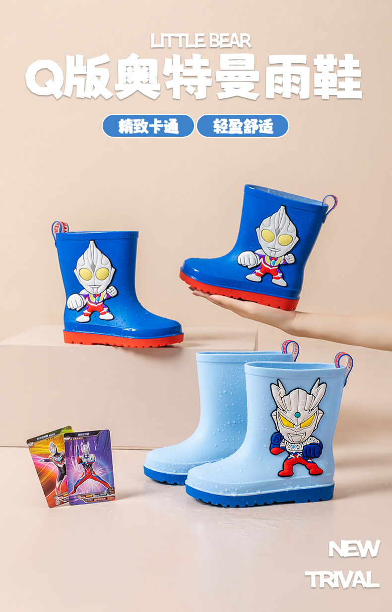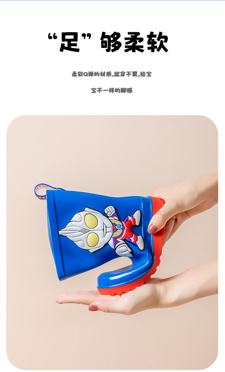 Натуральные детские резиновые сапоги Ultraman Tiga с героями мультфильмов, нескользящая обувь для воды средней длины для мальчиков, непромокаемые сапоги для учащихся начальной школы Zero, оптовая продажа