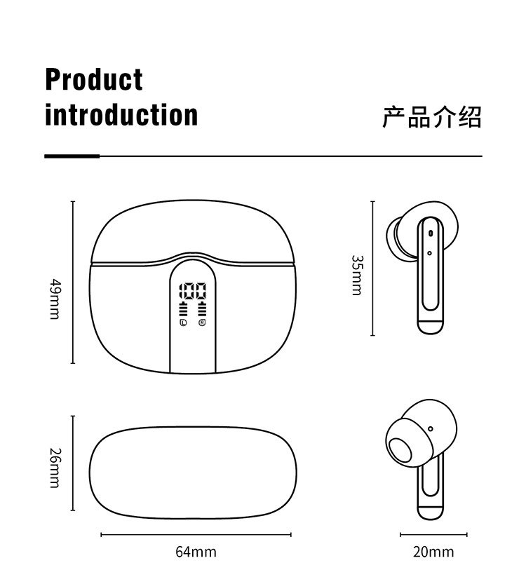 Беспроводные наушники S56 TWS с Bluetooth 5.3, цифровым дисплеем, внутриканальные, водонепроницаемые, улучшенные, стерео, с разъемом Type-C
