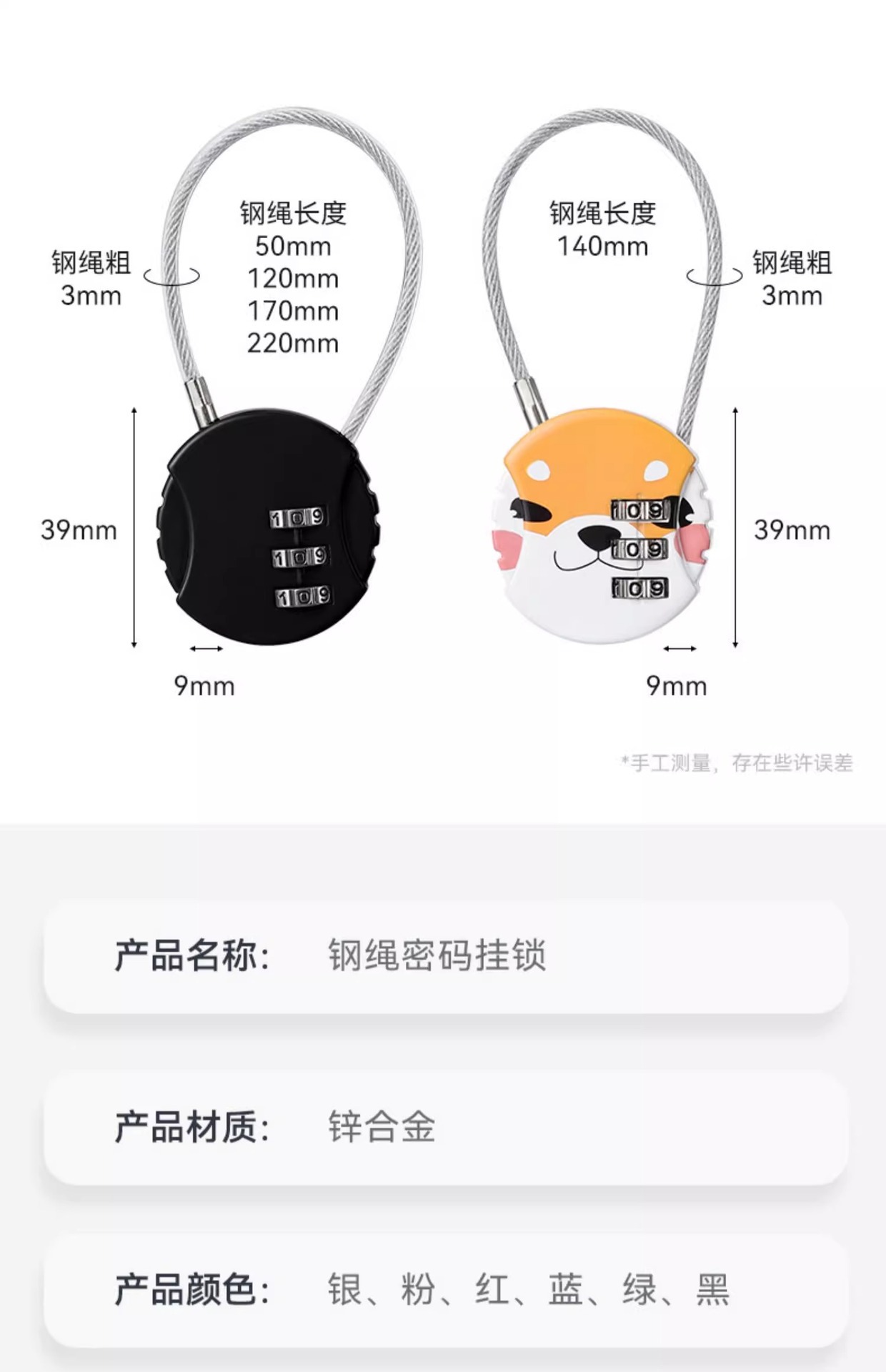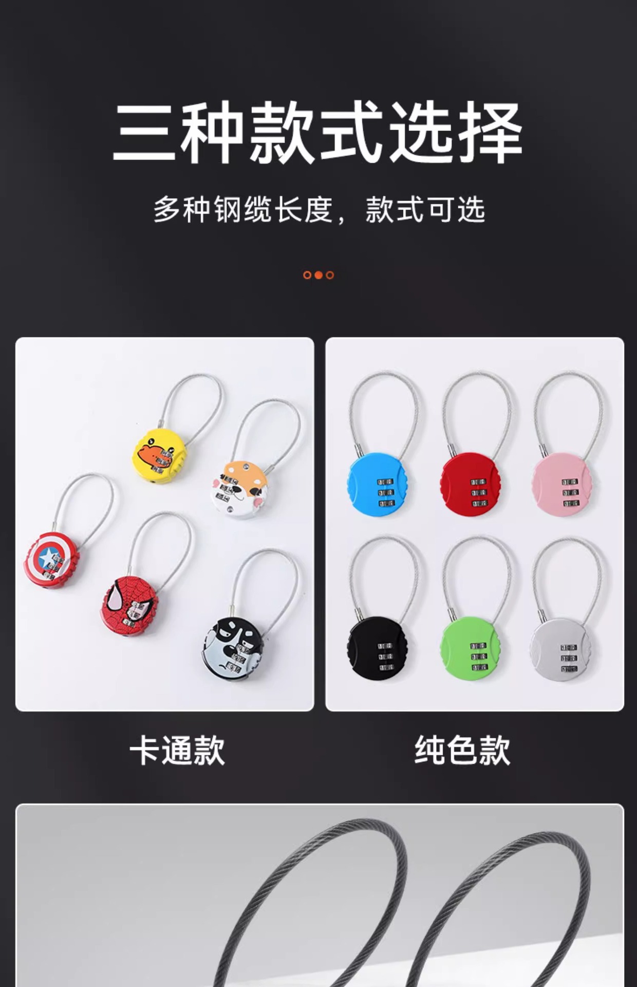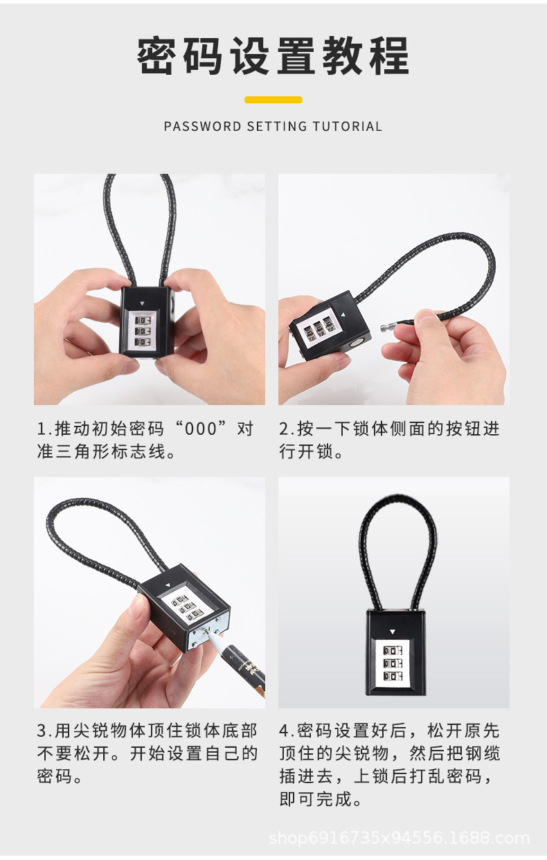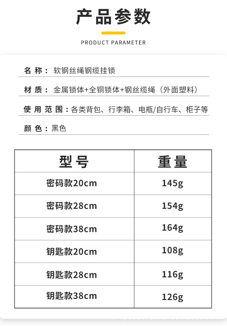 01 _ Стальной тросовый замок-черный-Стальной трос длиной 30 см-Четырехбитный пароль; 02 _ Стальной трос замок-Цвет пистолета-Стальной трос длиной 30 см-Четырехбитный пароль; 03 _ Стальной тросовый замок-черный-Стальной трос длиной 60 см-Четырехбитный пароль; 04 _ Стальной тросовой замок-цвет пистолета-Стальной трос длиной 60 см-Четырехбитный пароль; 05 _ тросовый замок-черный-длина 13 см-три пароля; 06 _ Благосостояние-цвет стили случайный (не указан)
