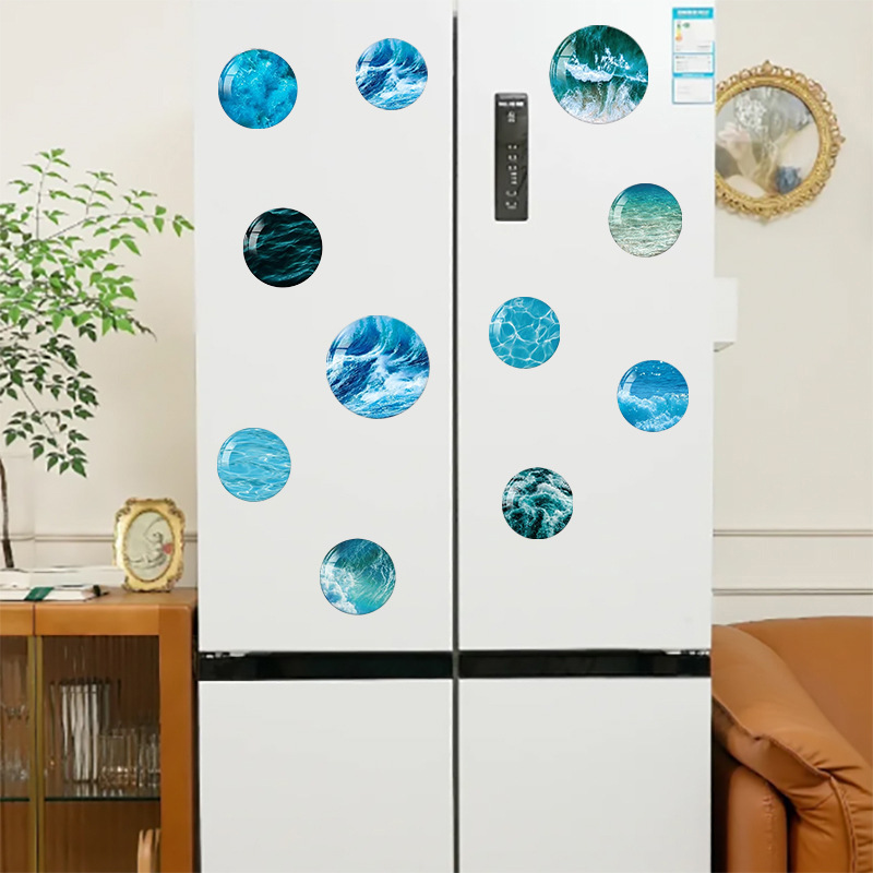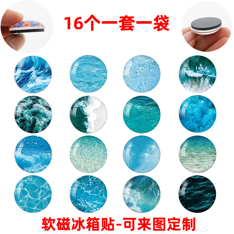 Творческий романтический синий морской волной пейзаж времени драгоценный камень стекло патч мягкий магнитный холодильник наклейки 16 наборов