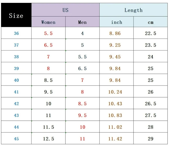 36=36.5; 37; 38=38.5; 39; 40=40.5; 41; 42=42.5; 43; 44=44.5; 45; 46