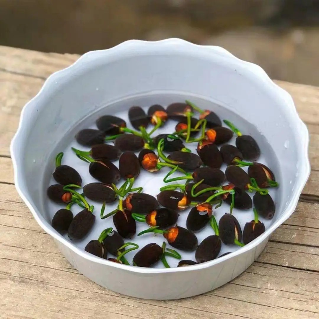 将已破壳的种子,浸于温水中。一天换2到3次水为佳