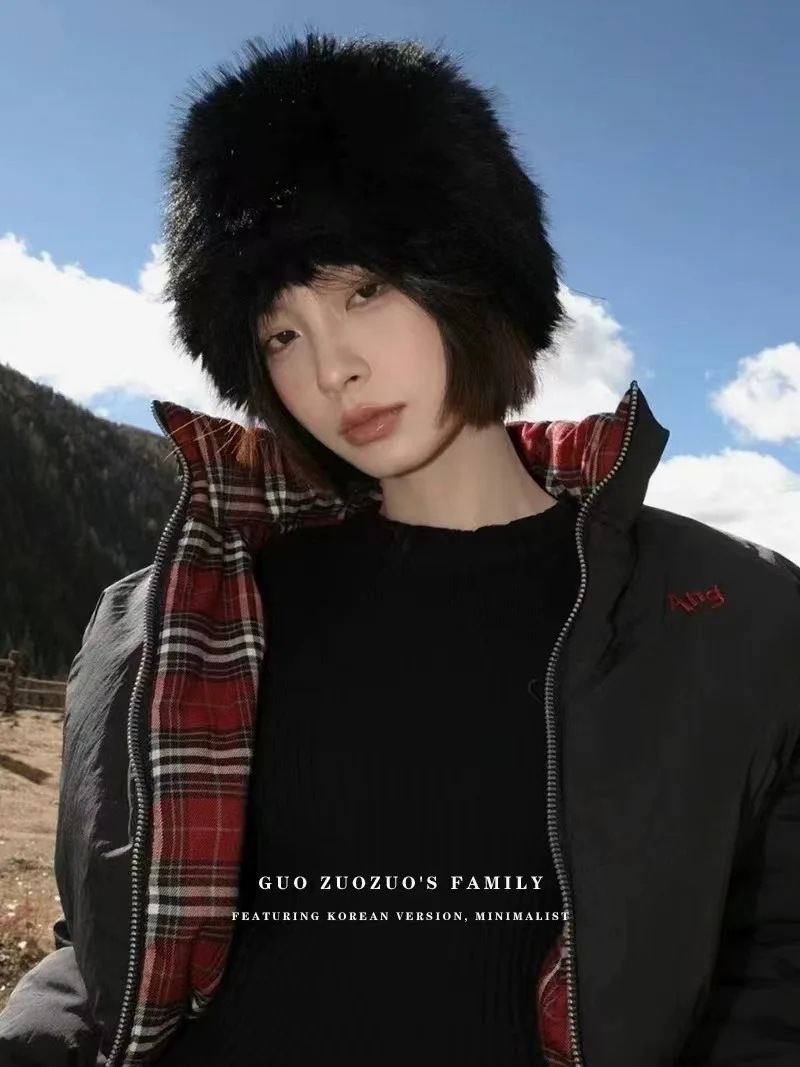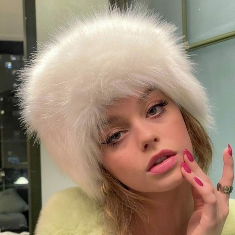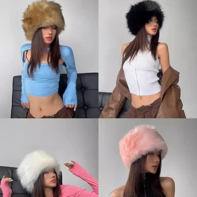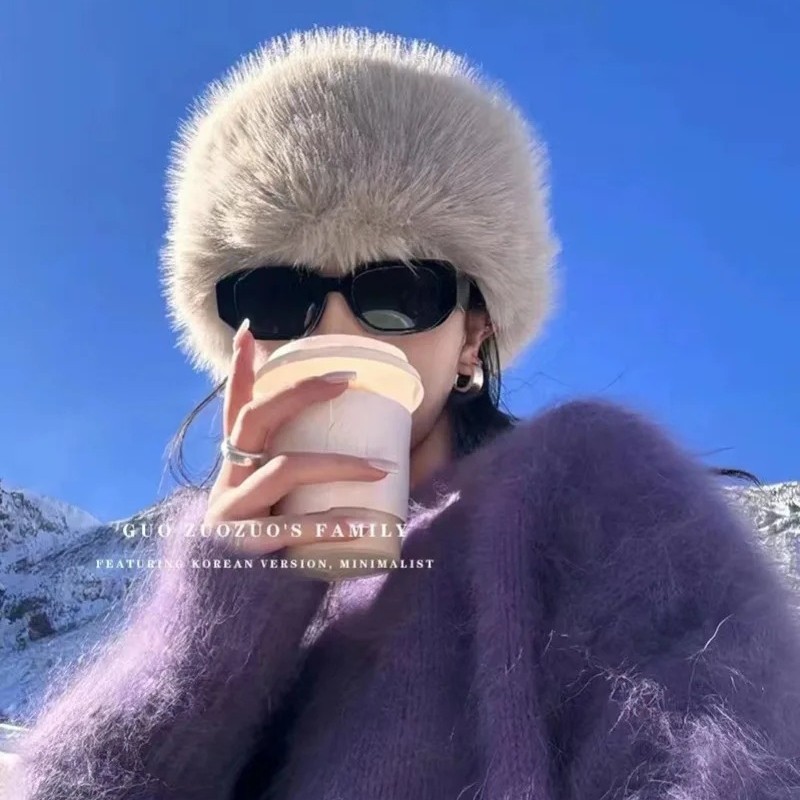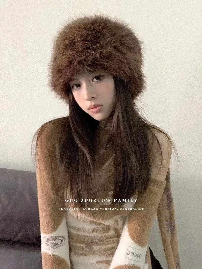 KKSHOP Европейские и американские горячие девушки имитация лисьего меха круглые плоские кожаные шляпы толстые осенние и зимние меха