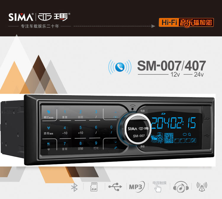 Sima 007 Автомобильный MP3-плеер вставки U диск автомобильный радио сенсорный экран с Bluetooth 12V24V