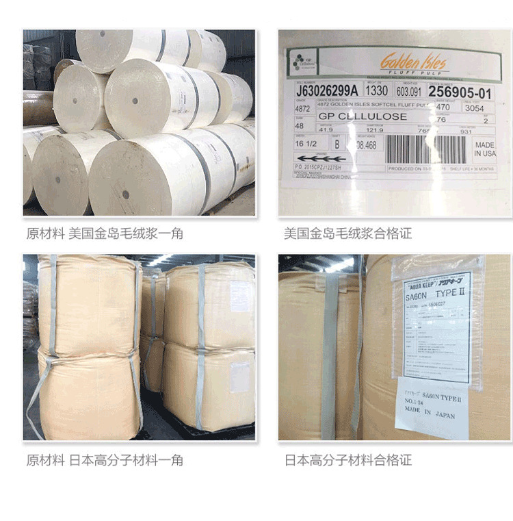 SSS гидрофильный нетканый материал, бамбуковое древесное волокно, SAP, ворсинчатый пульпа, PE проточная пленка