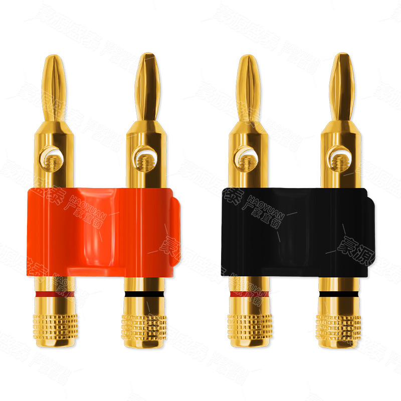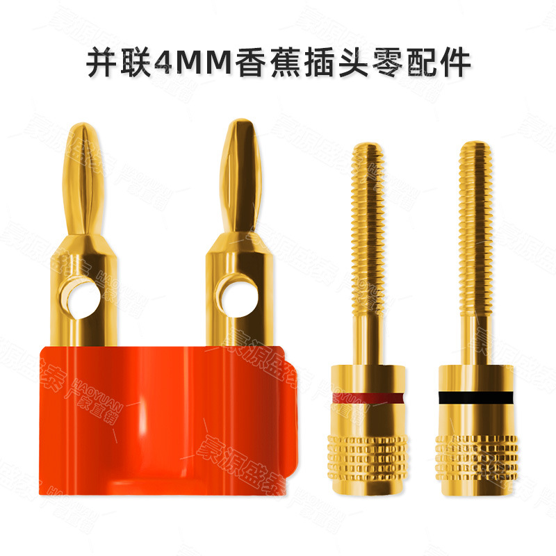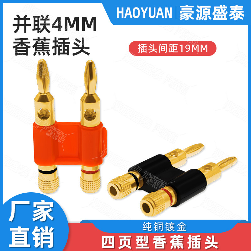 Чистая медная позолоченная 4 мм банановая вилка двойной ряд параллельных четырех листовых банановых штекеров