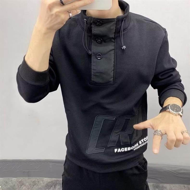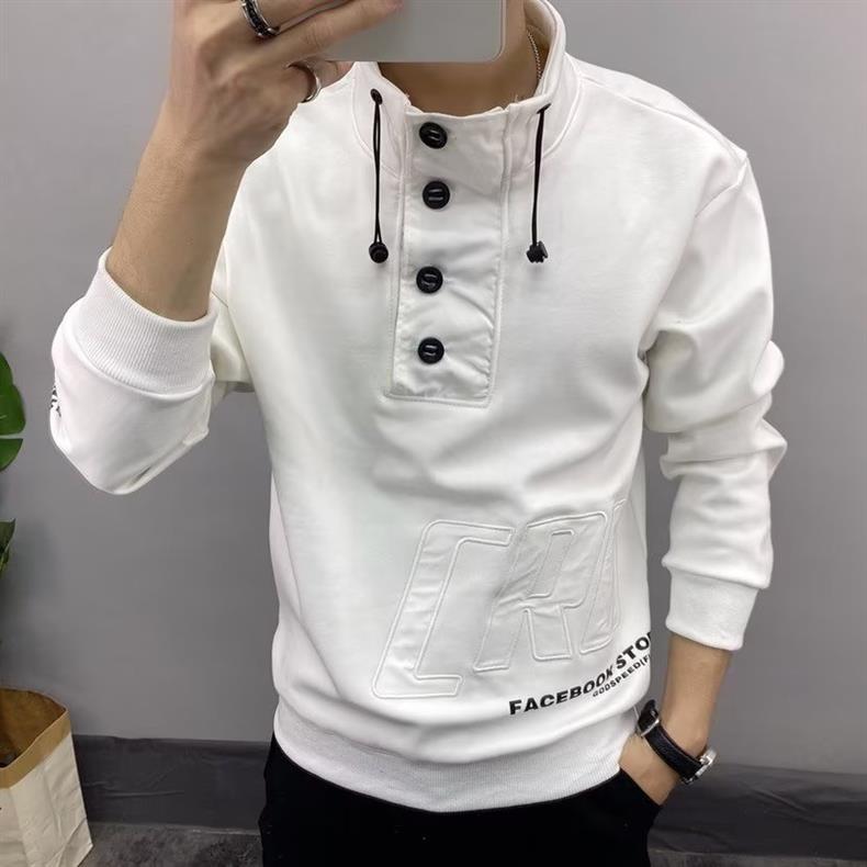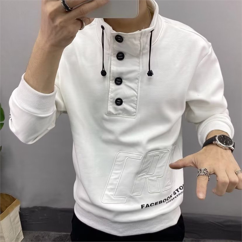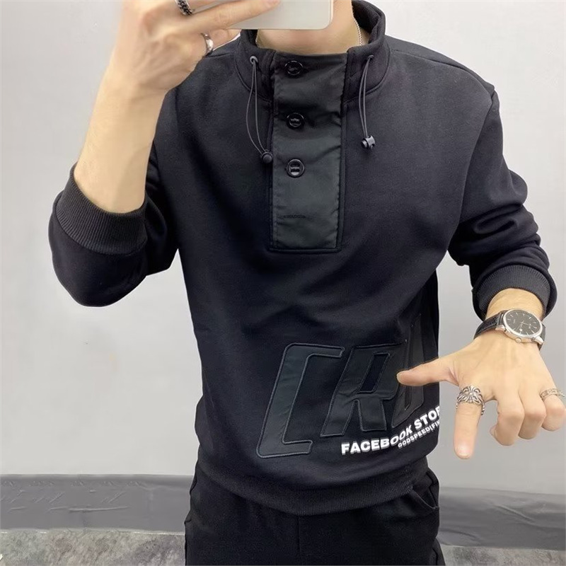 Толстовка для мужчин ins прилив 2024 новая нижняя рубашка осень-зима вышитый воротник с длинными рукавами, облегающий дикий топ