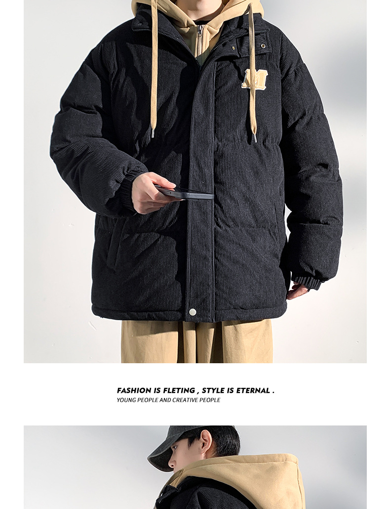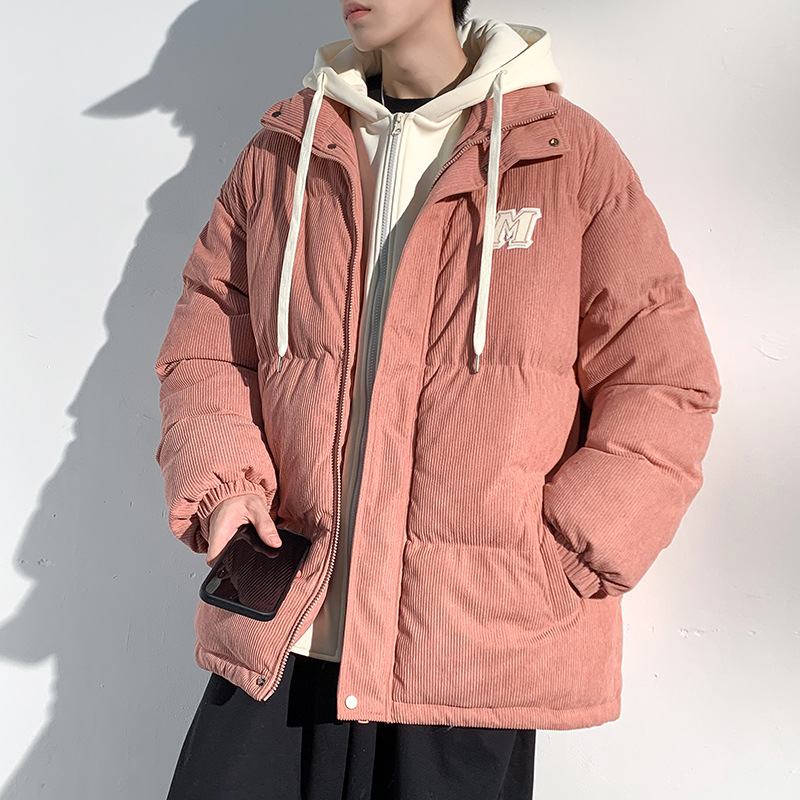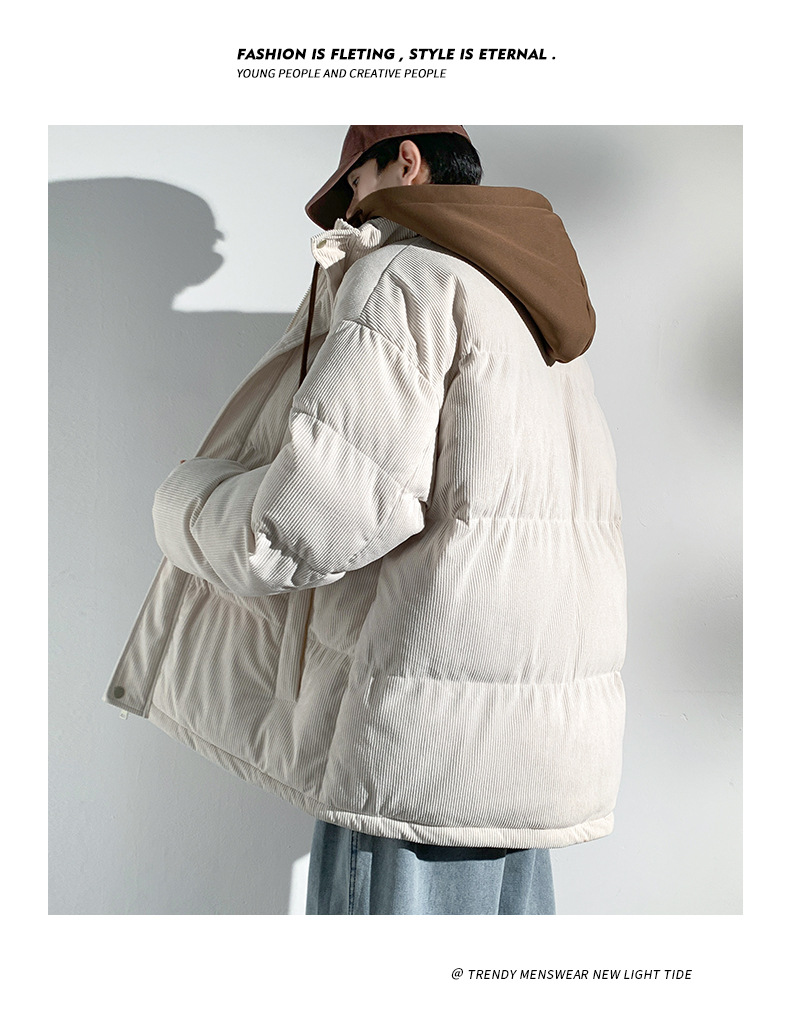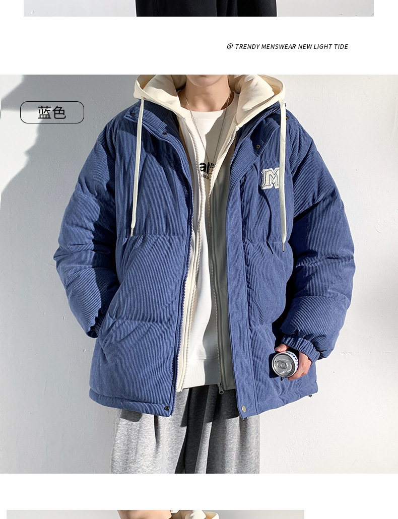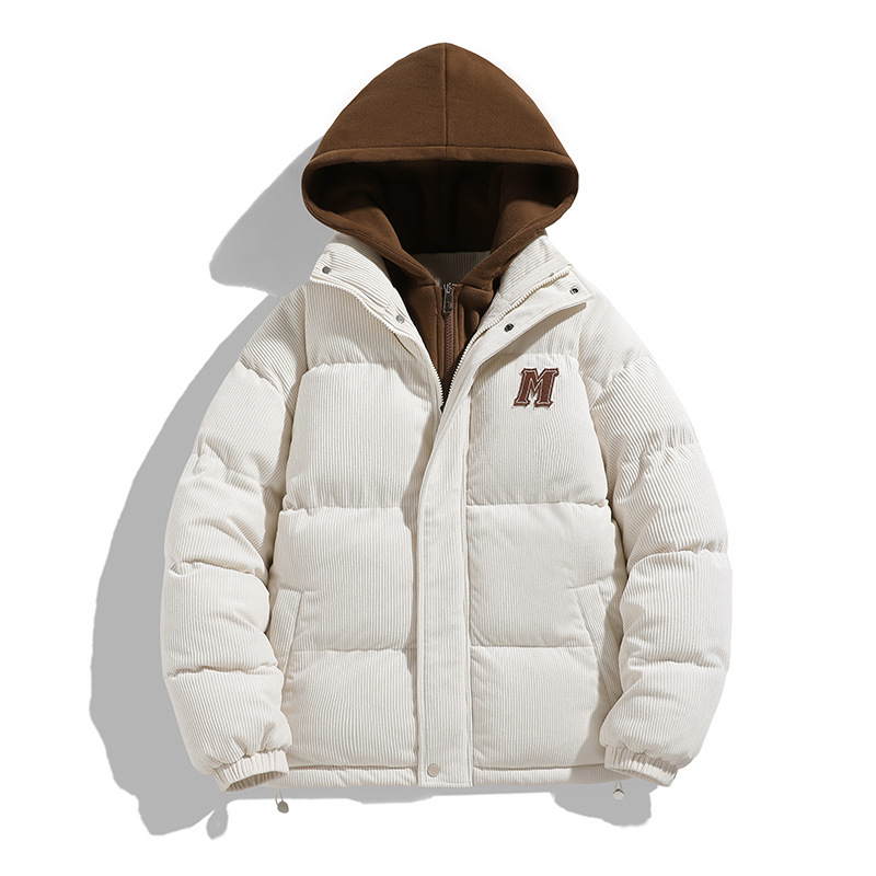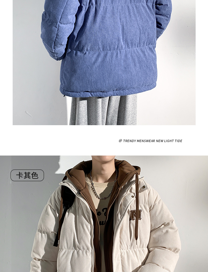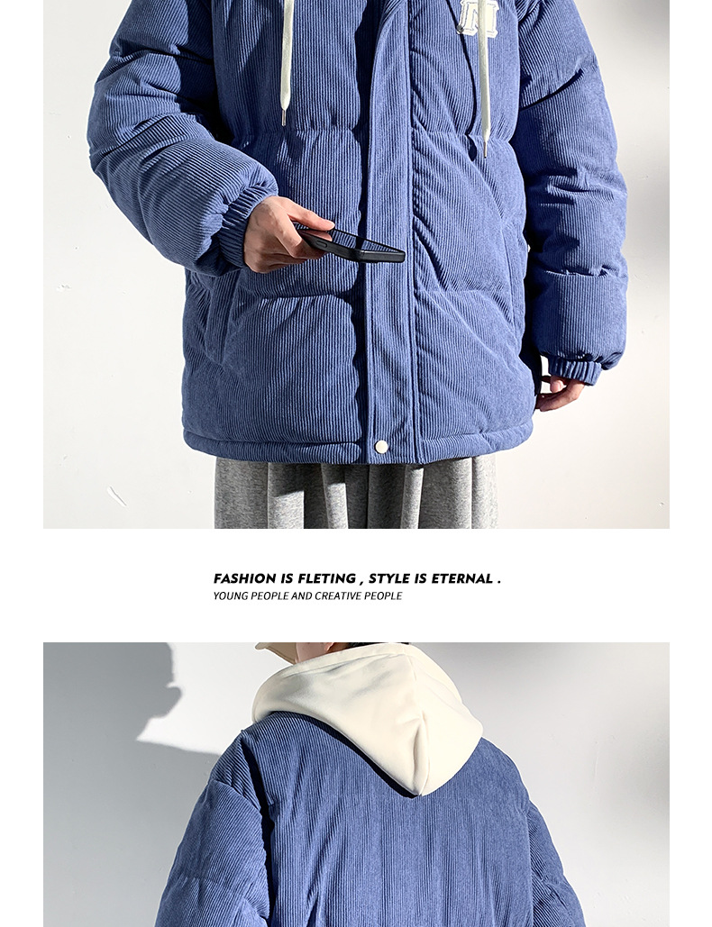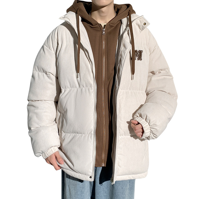 Новая зимняя вельветовая хлопчатобумажная куртка для мужчин в Гонконге свободный сплошной цвет с капюшоном поддельные две модные хлопчатобумажные куртки