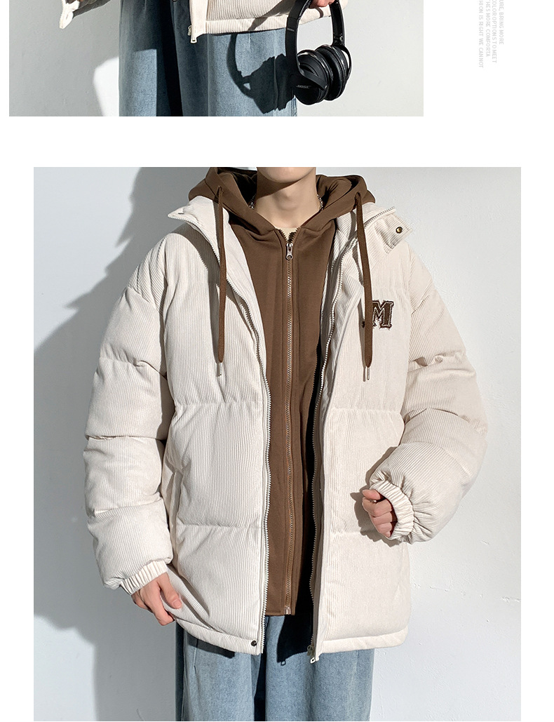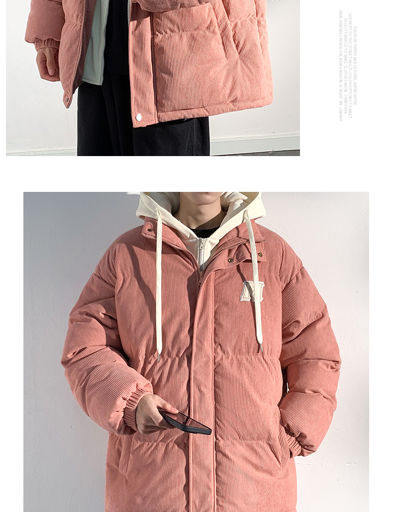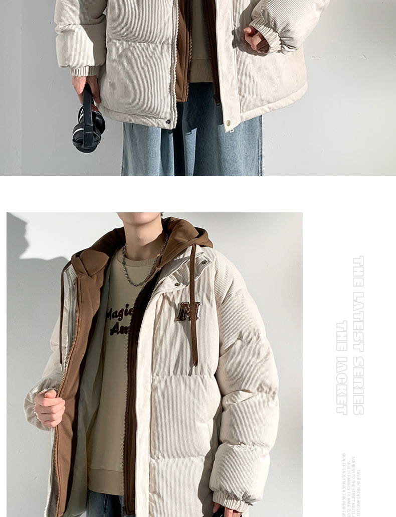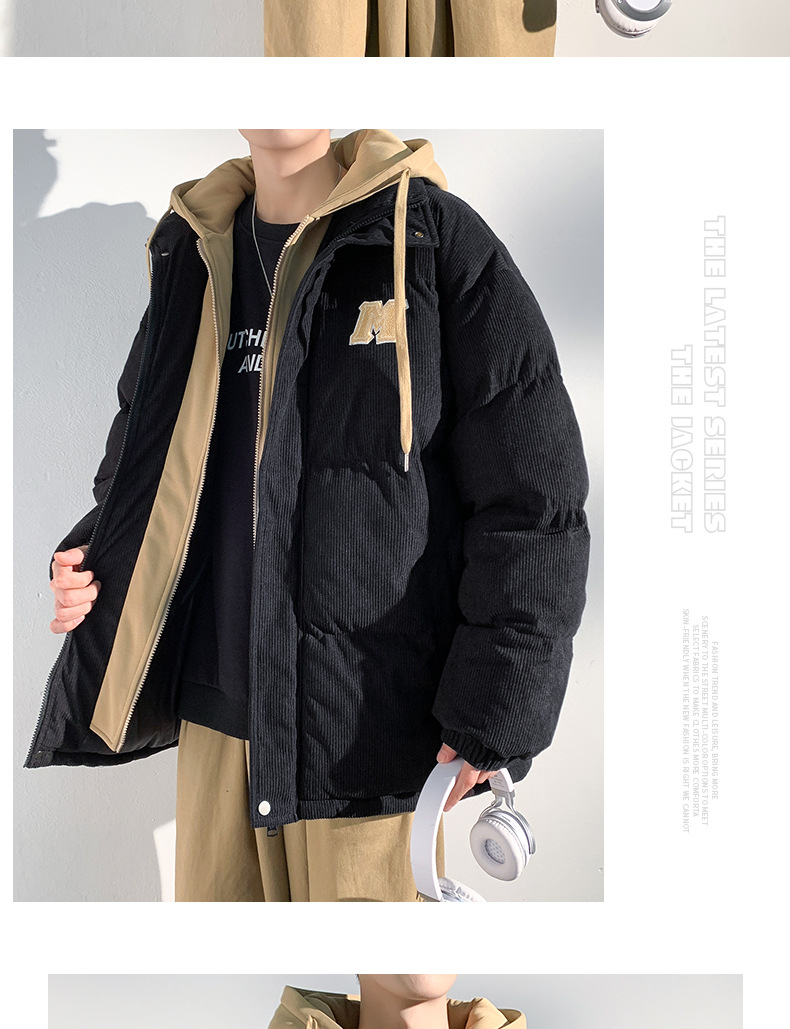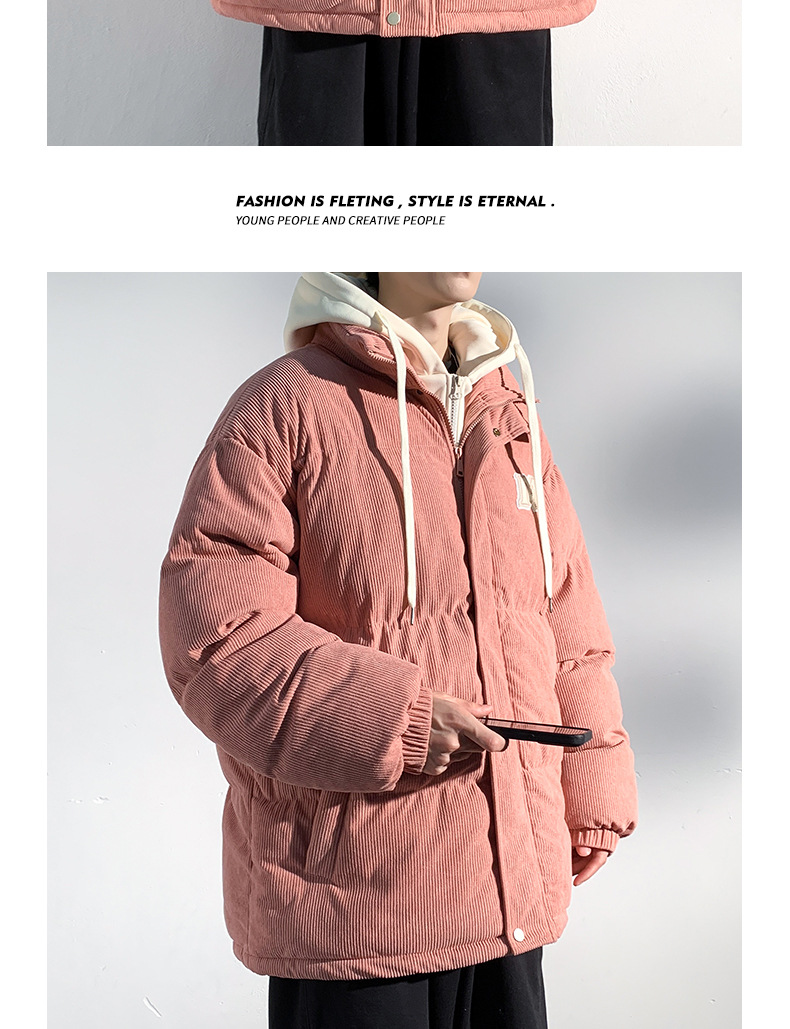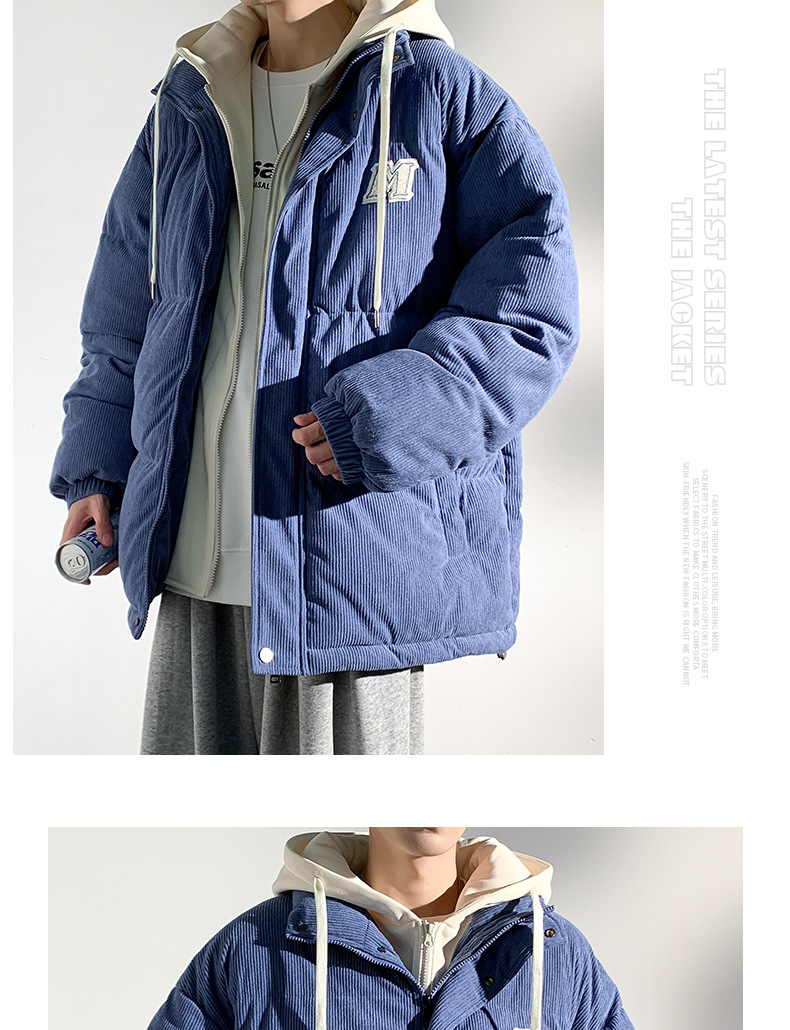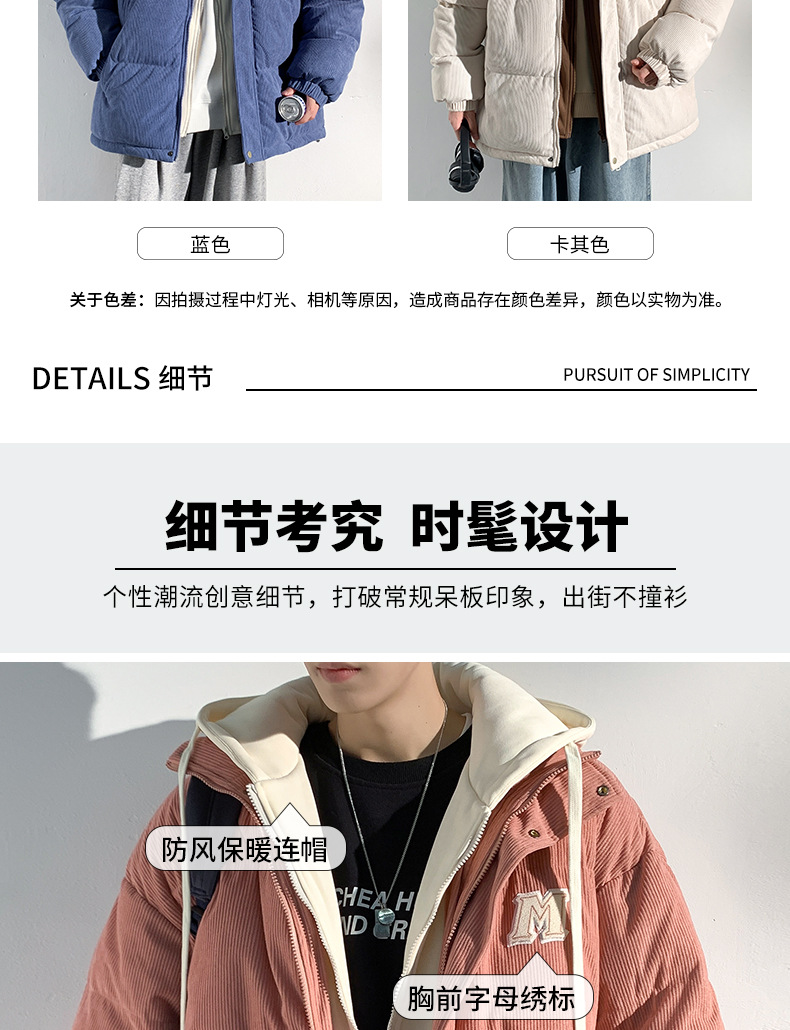 Новая зимняя вельветовая хлопчатобумажная куртка для мужчин в Гонконге свободный сплошной цвет с капюшоном поддельные две модные хлопчатобумажные куртки