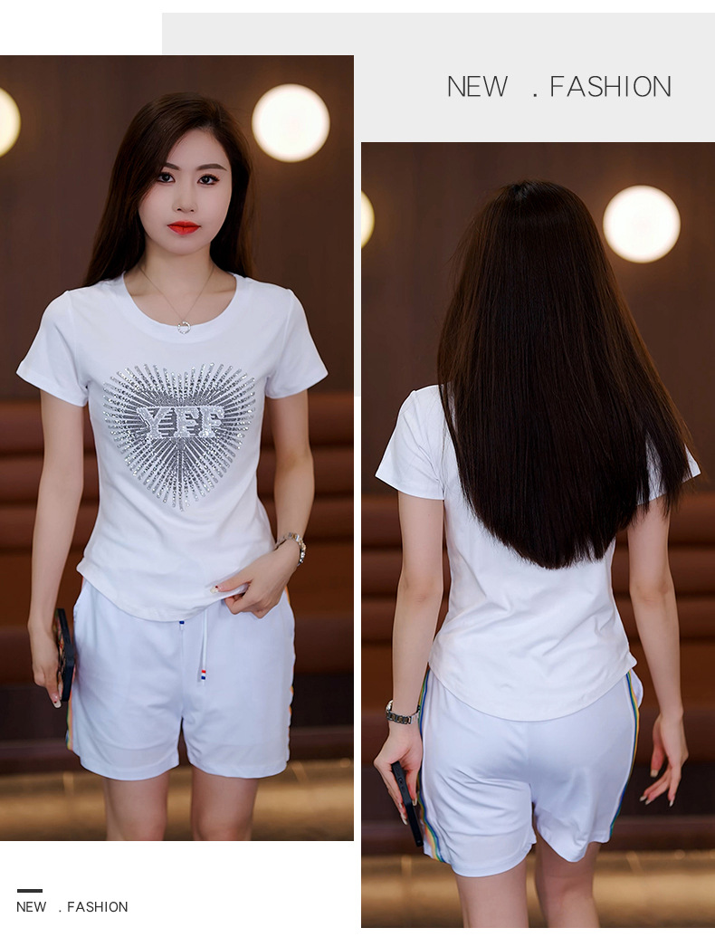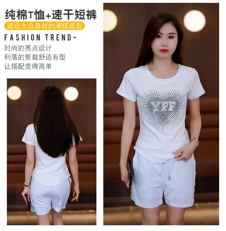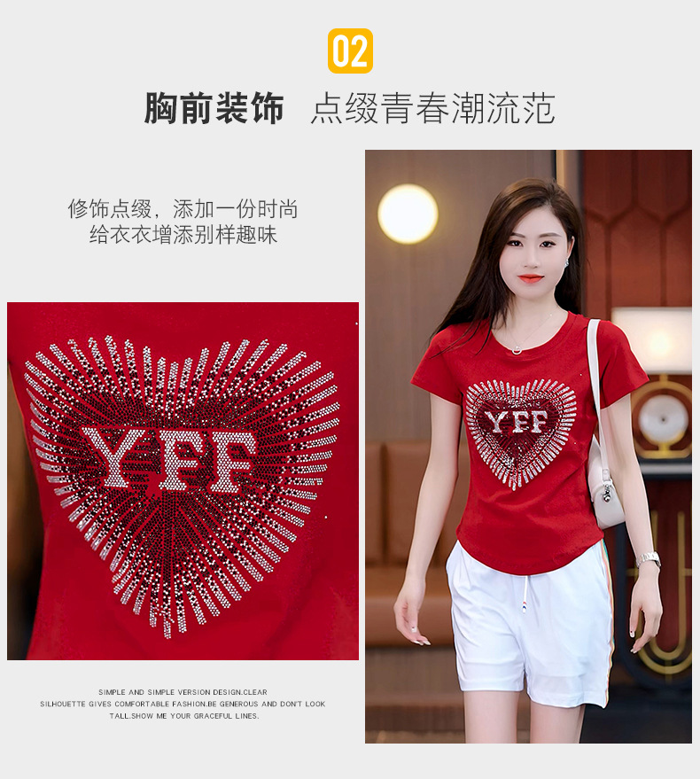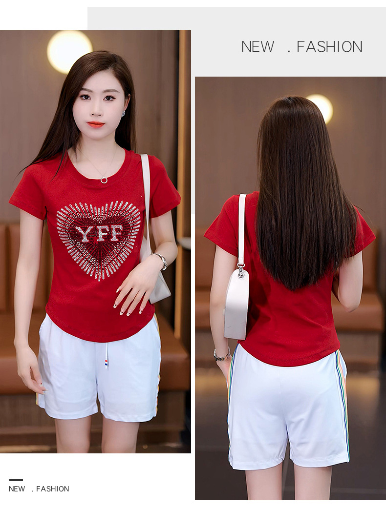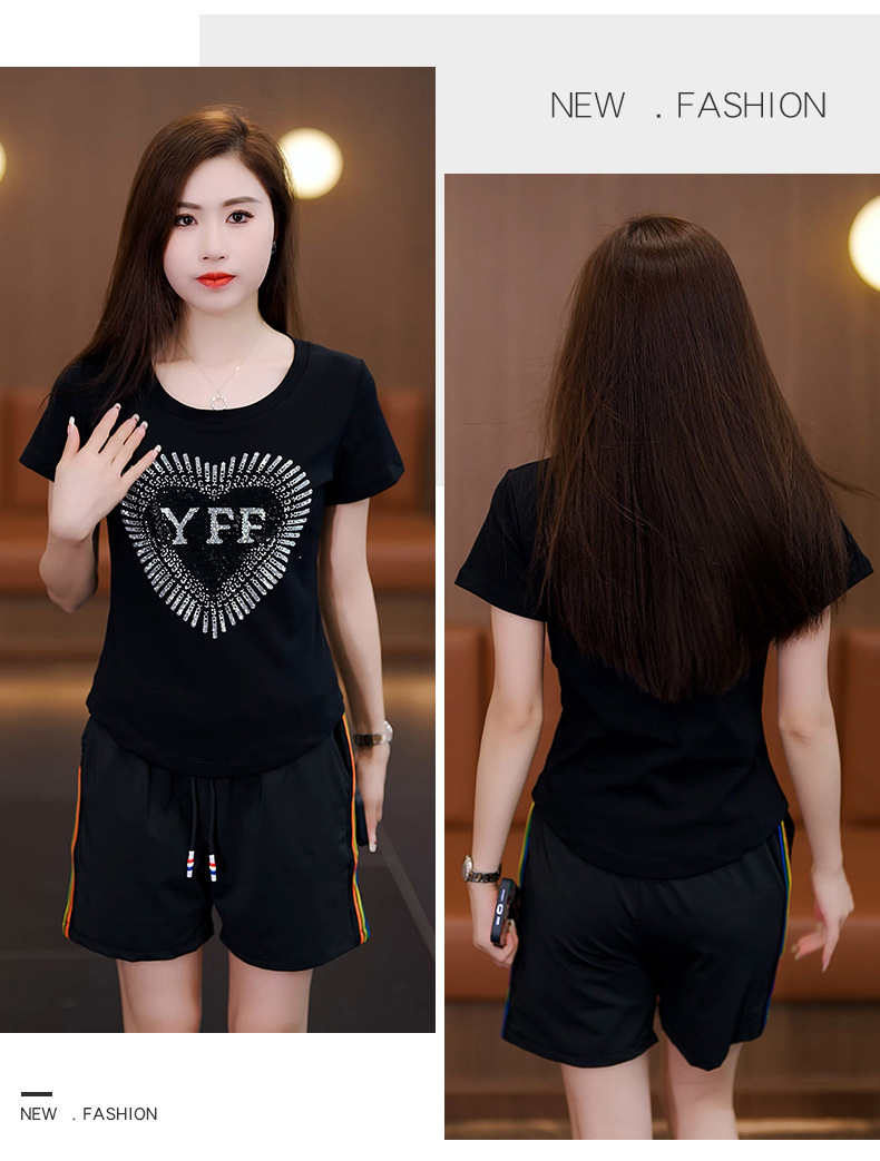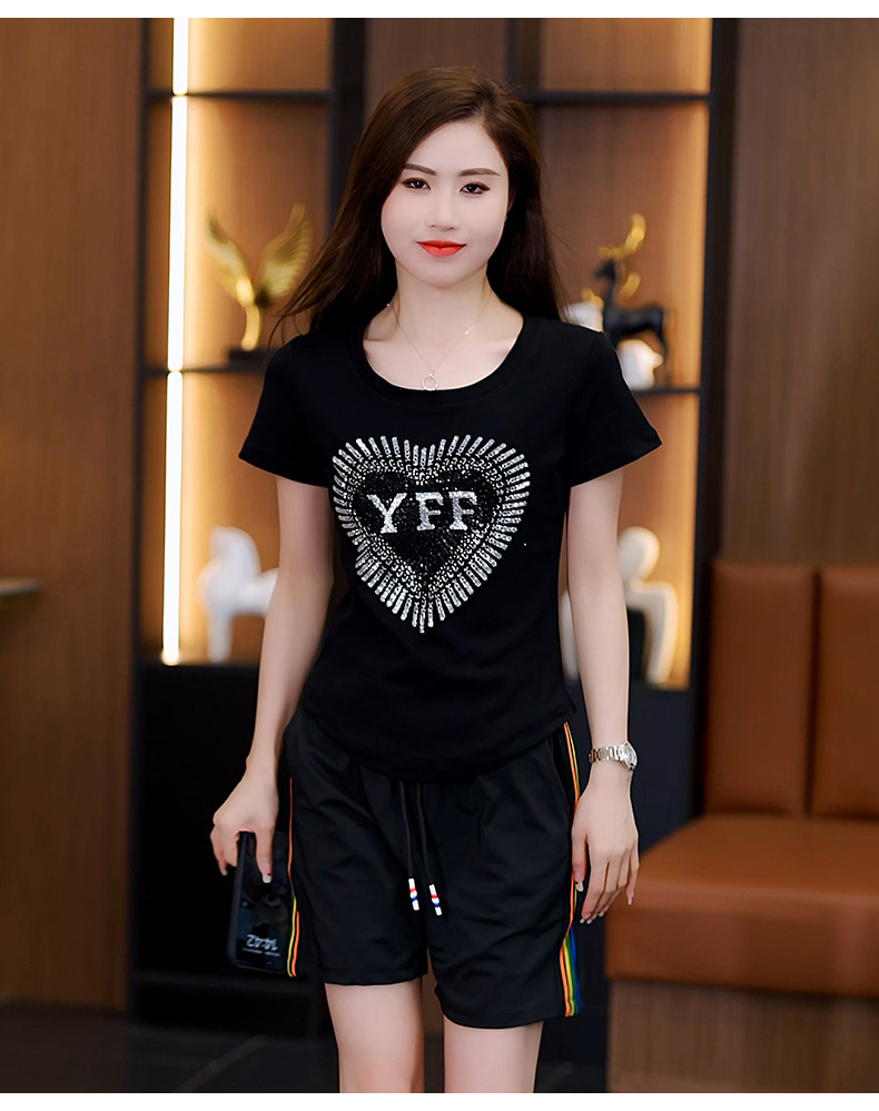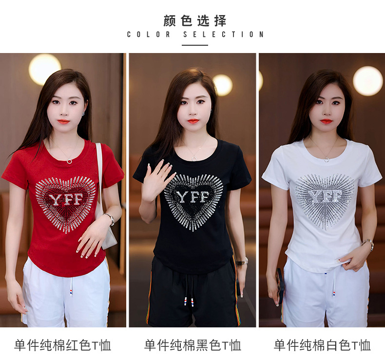 Летняя трапезная танцевальная одежда новый короткий рукав с горячими бриллиантами топ хлопчатобумажная группа фитнес-прыжки, бег, повседневная одежда