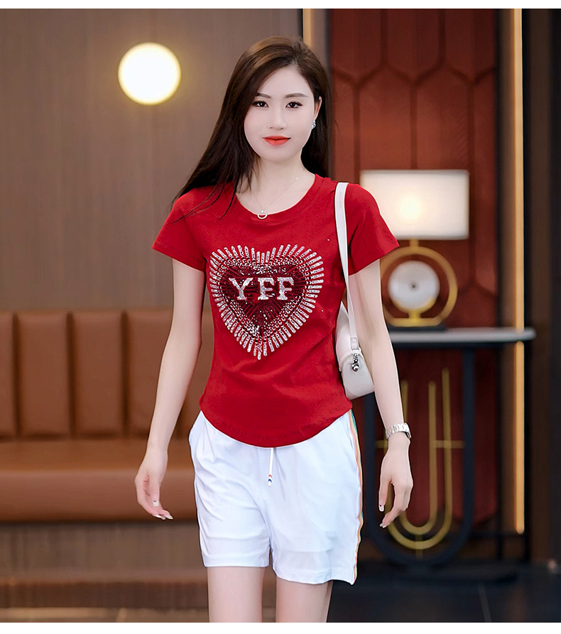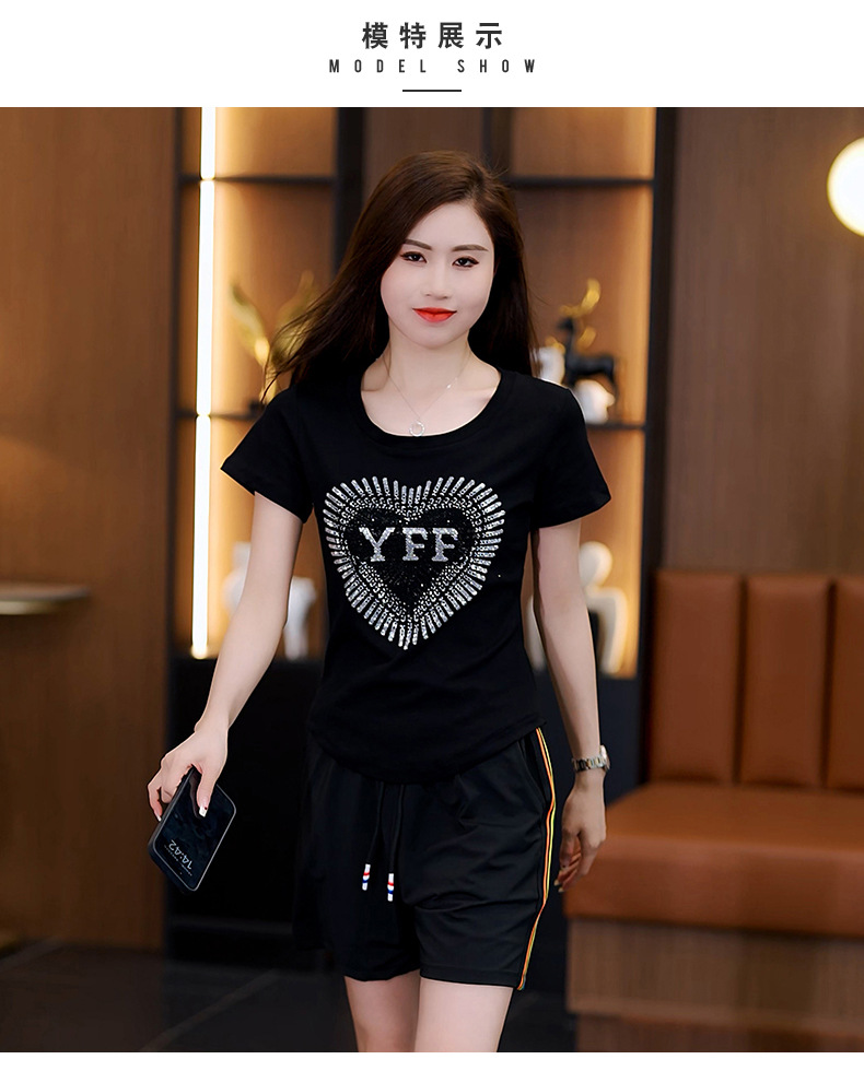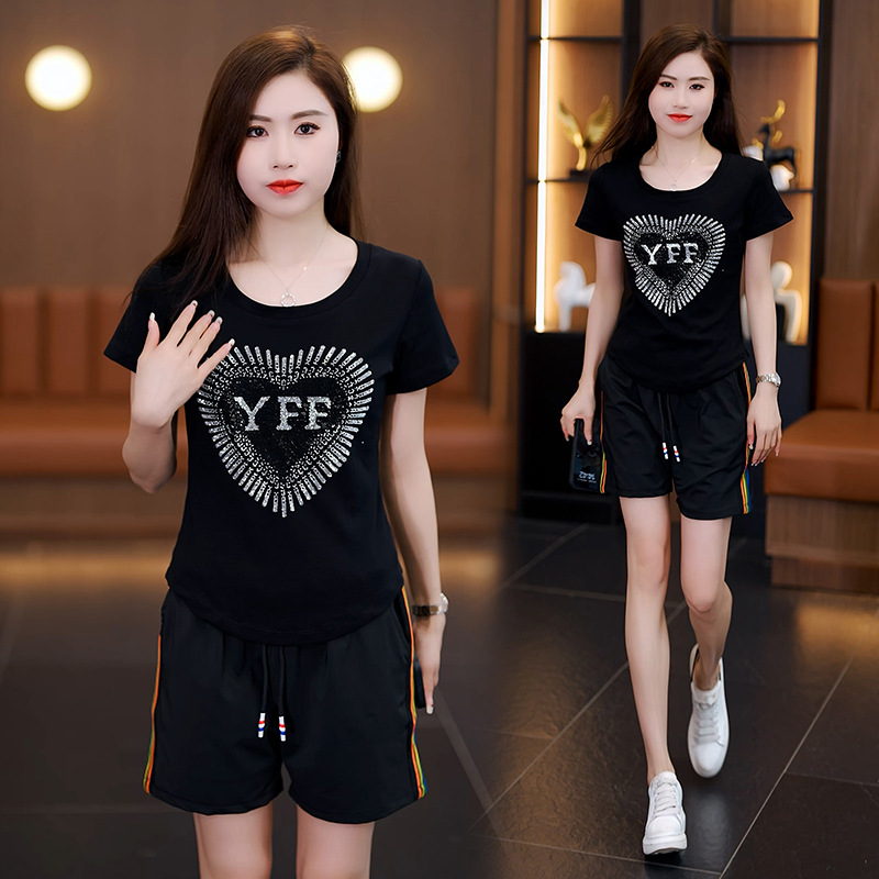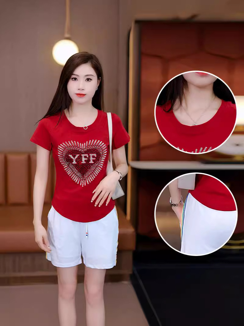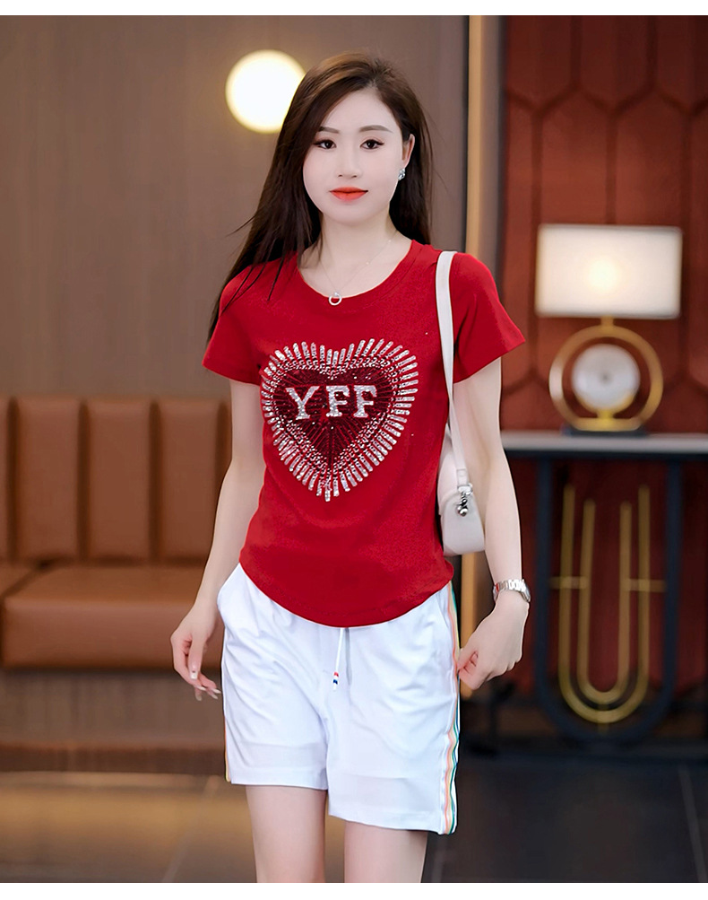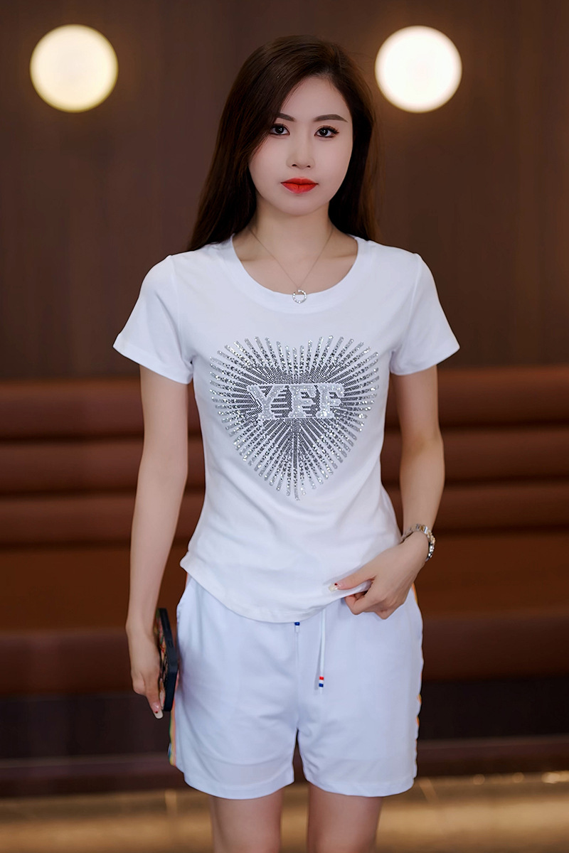 Летняя трапезная танцевальная одежда новый короткий рукав с горячими бриллиантами топ хлопчатобумажная группа фитнес-прыжки, бег, повседневная одежда