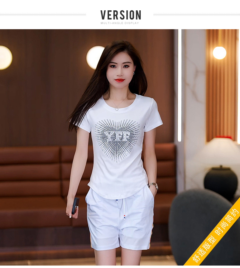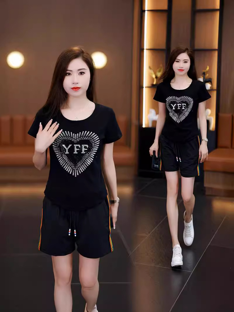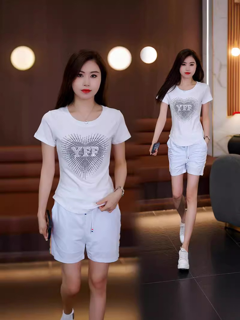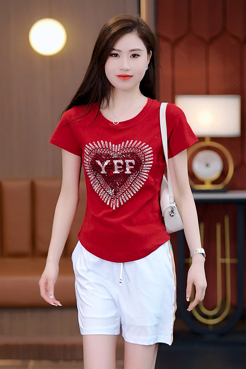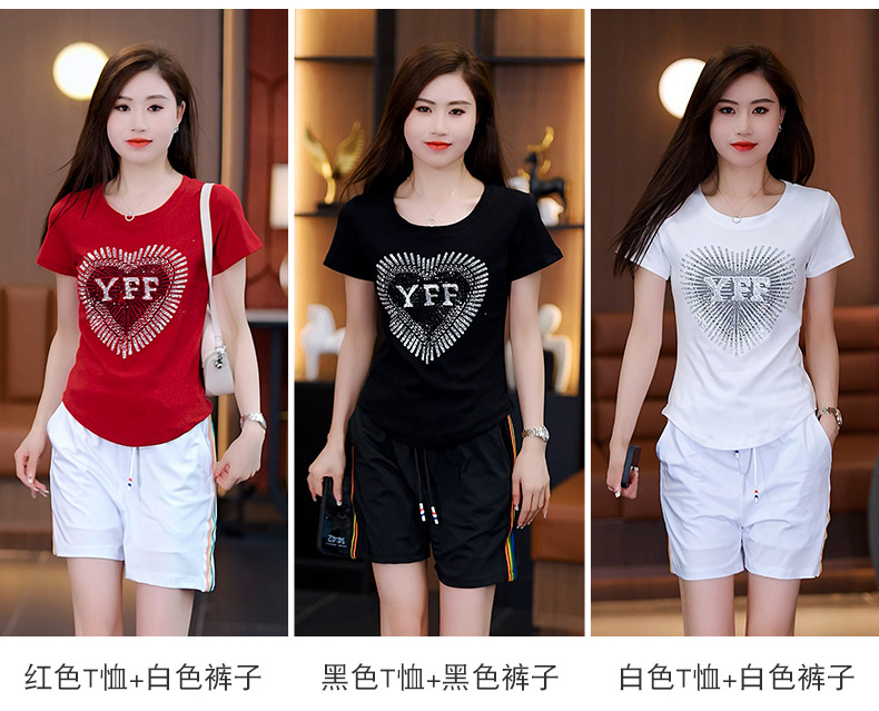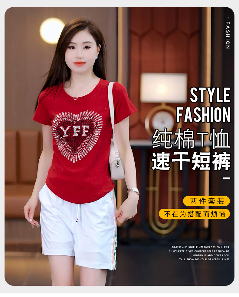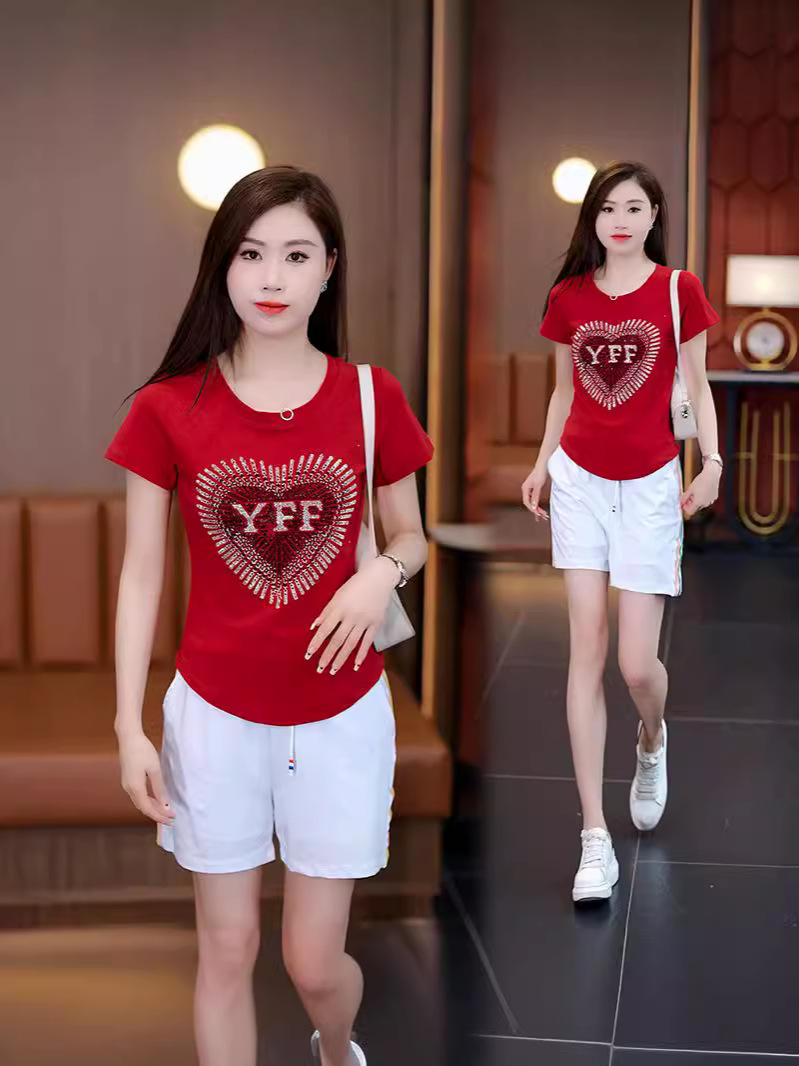 Летняя трапезная танцевальная одежда новый короткий рукав с горячими бриллиантами топ хлопчатобумажная группа фитнес-прыжки, бег, повседневная одежда